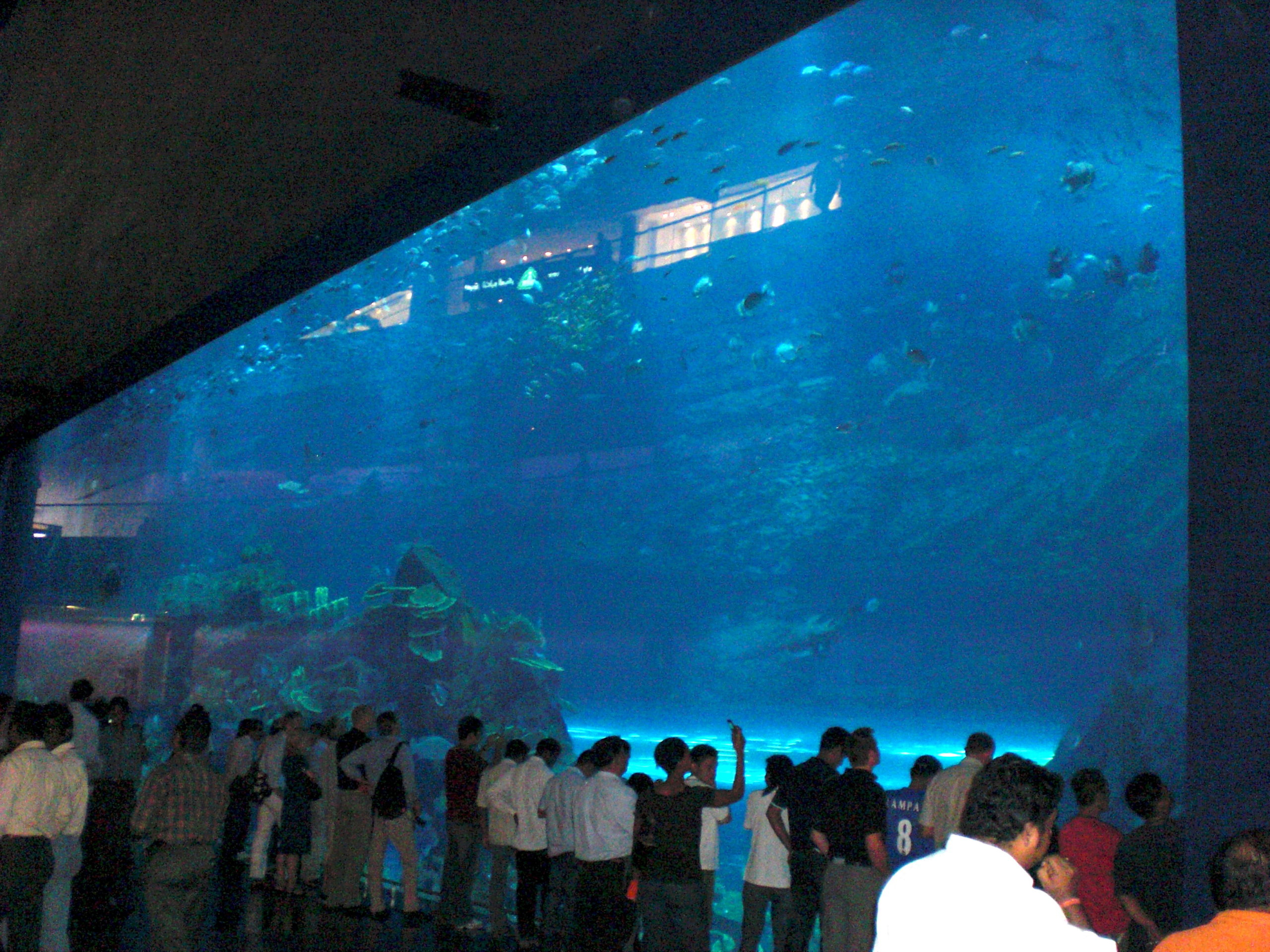 Ein Besuch der Dubai Mall, ohne Besichtigung des Aquariums, ist unvorstellbar. Zumindest bewundert man im Vorbeigehen die riesige Frontscheibe mit dem überdimensionalen Acry Panel das bereits erahnen lässt, dass sich dahinter noch mehr verbirgt.