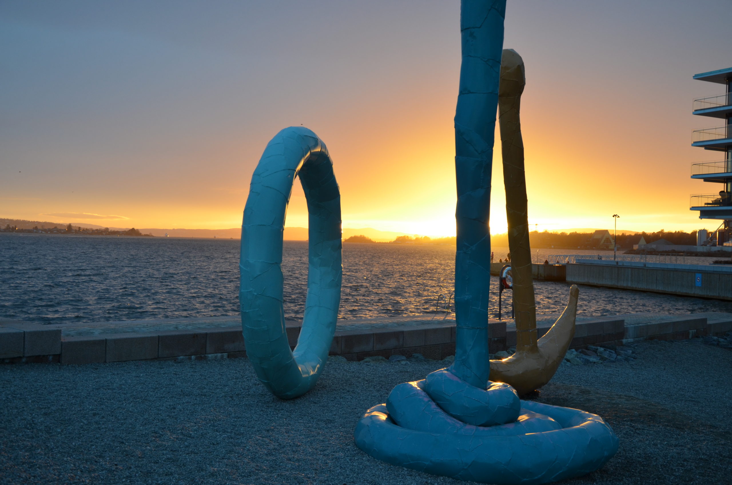 Tjuvholmen zeichnet sich auch durch kunstvoll gestaltete Außenbereiche einschließlich einiger humorvoller Freiluft-Kunstwerke aus.