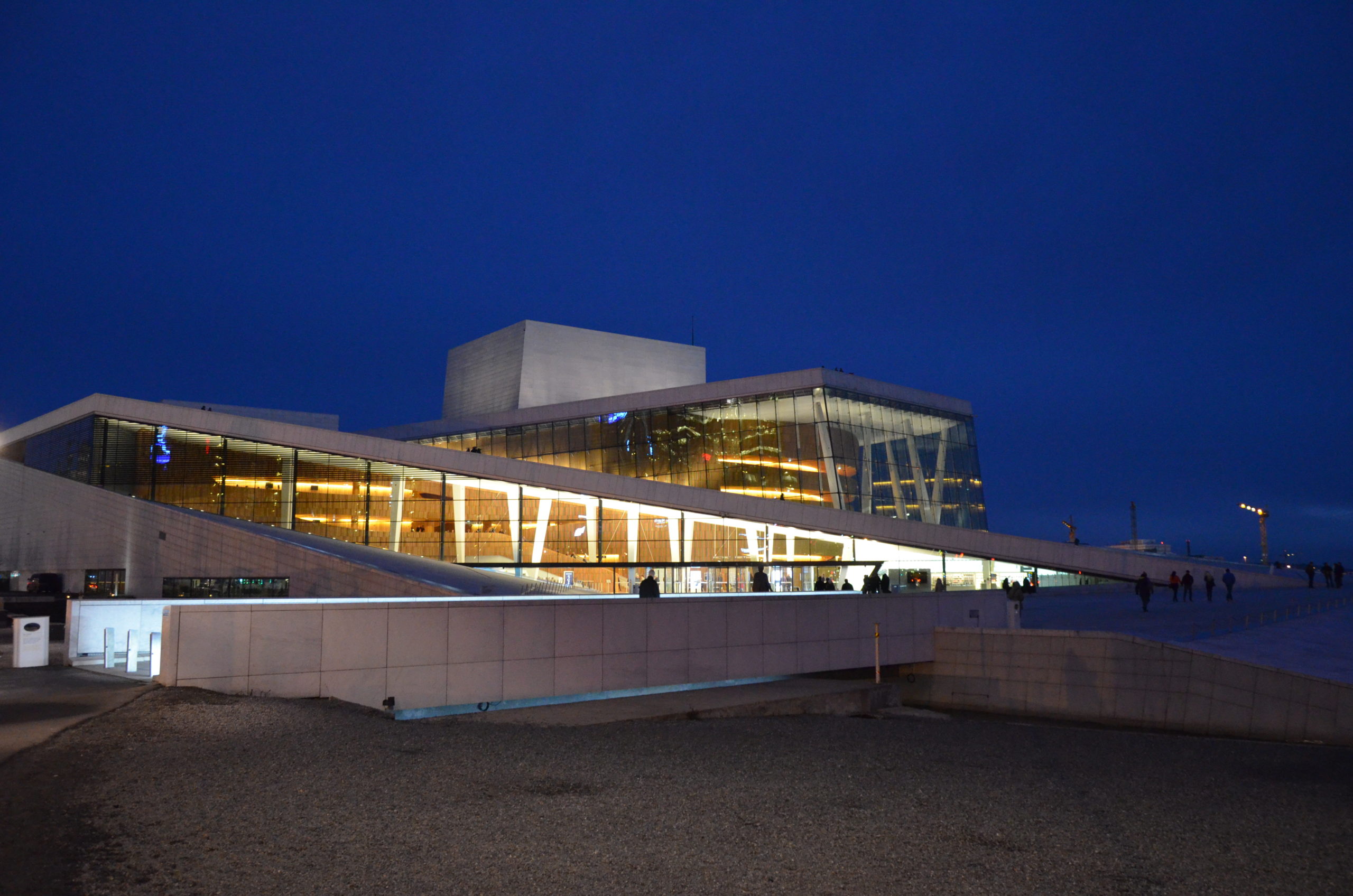 Oslos Opernhaus mit seiner eckigen, weißen Fassade, die sich aus dem Wasser zu erheben scheint, liegt direkt am Hafen. Es lädt die Besucher ganzjährig dazu ein, sein Dach zu besteigen und den Panoramablick über Oslo und den Fjord zu genießen. Durch große Fenster auf Straßenebene können Passanten einen Blick auf Proben- und Workshopaktivitäten erhaschen. Das Gebäude wurde von dem norwegischen Architektenbüro Snøhetta entworfen und wurde mit einigen prestigeträchtigen Preisen ausgezeichnet.