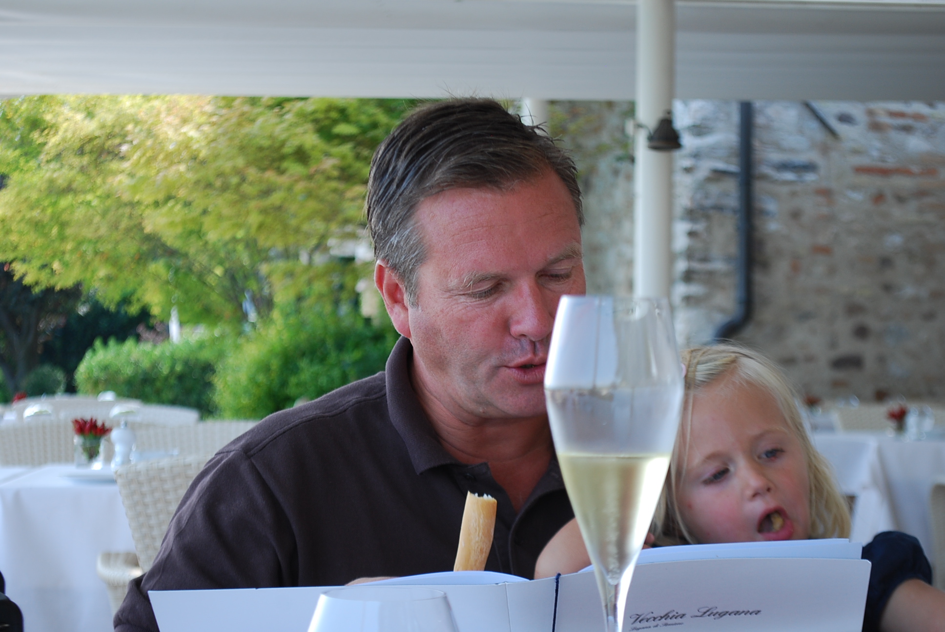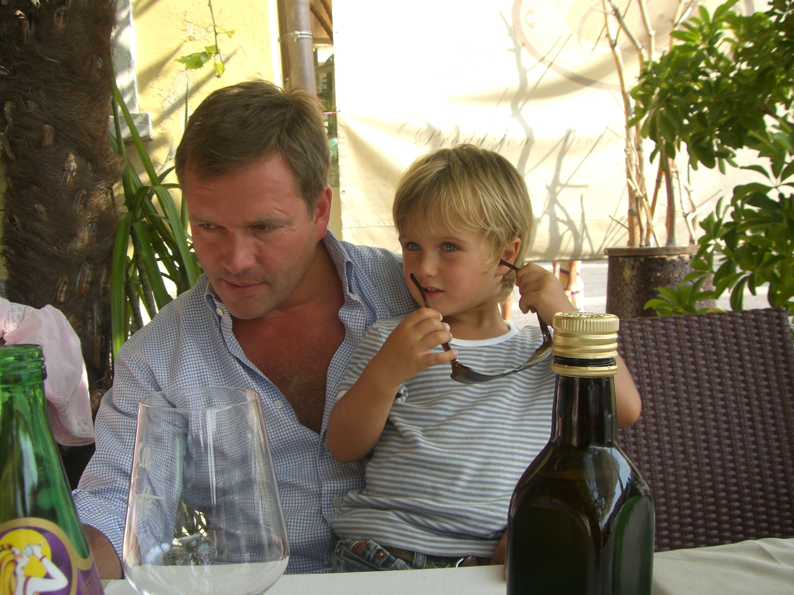Dierk mit Sohn Leo, einem guten Rotwein und dem Abendessen