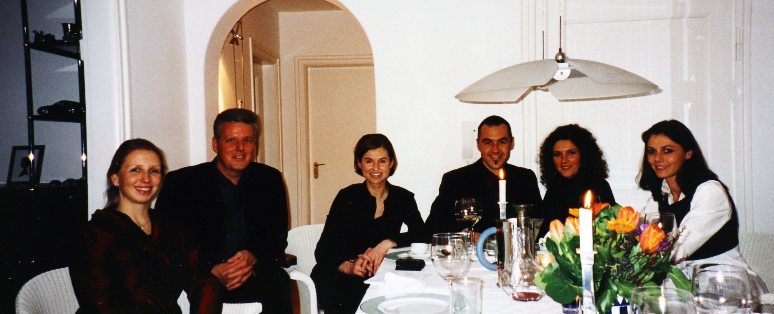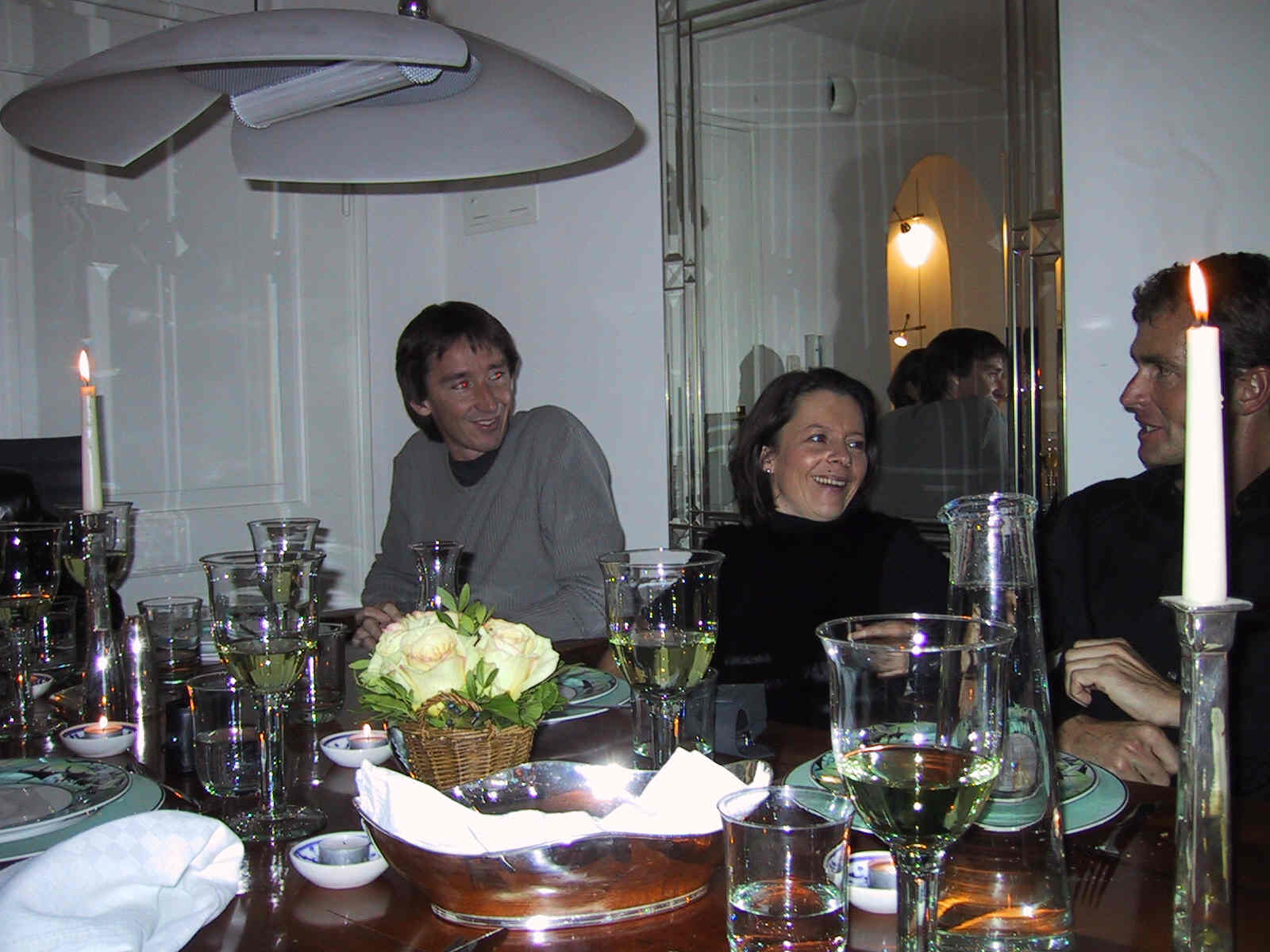 Wie schon im Jahr 2000 haben wir auch 2001 diverse inspirierende Abendessen mit professioneller Unterstützung durch unsere Köchin Claudia Buchmaier veranstaltet. Es waren immer unterschiedliche Gruppen, letztlich eine Neuinterpretation des guten alten Salons. Zu guten Mahlzeiten gehören nicht nur die Zutaten, sondern ebenso die Menschen, mit denen wir gemeinsam Zeit verbringen: nette Gespräche und gutes Essen, ein Austausch zwischen verschiedenen Lebensentwürfen machten diese Abende so spannend. Gemeinsame Zeit ist wertvoll. Und: „ A public world in a private space. “