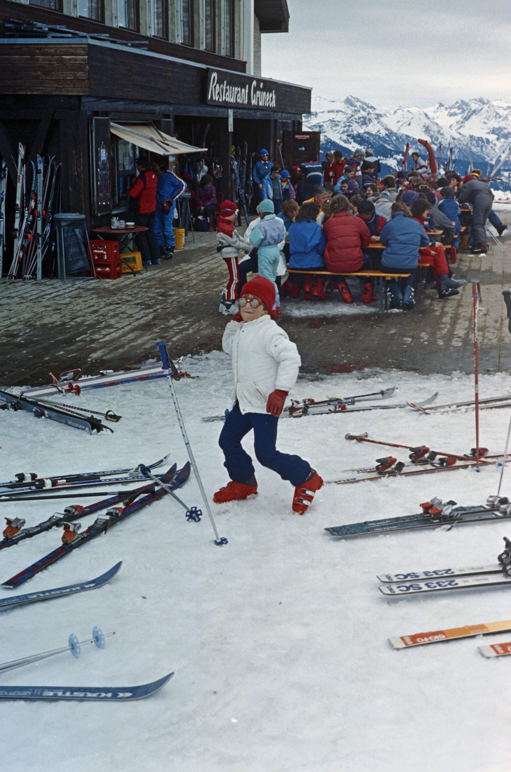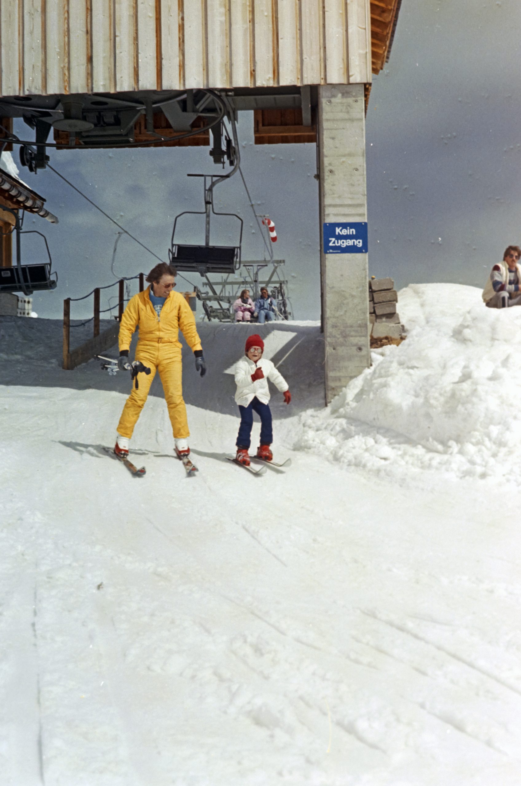 Die Familie Curtius ist startklar ... es ist sehr praktisch, daß ich mich in dem mir bislang noch unbekannten Golmer Skigebiet am gelben Ski-Overall von Fritz gut orientieren kann