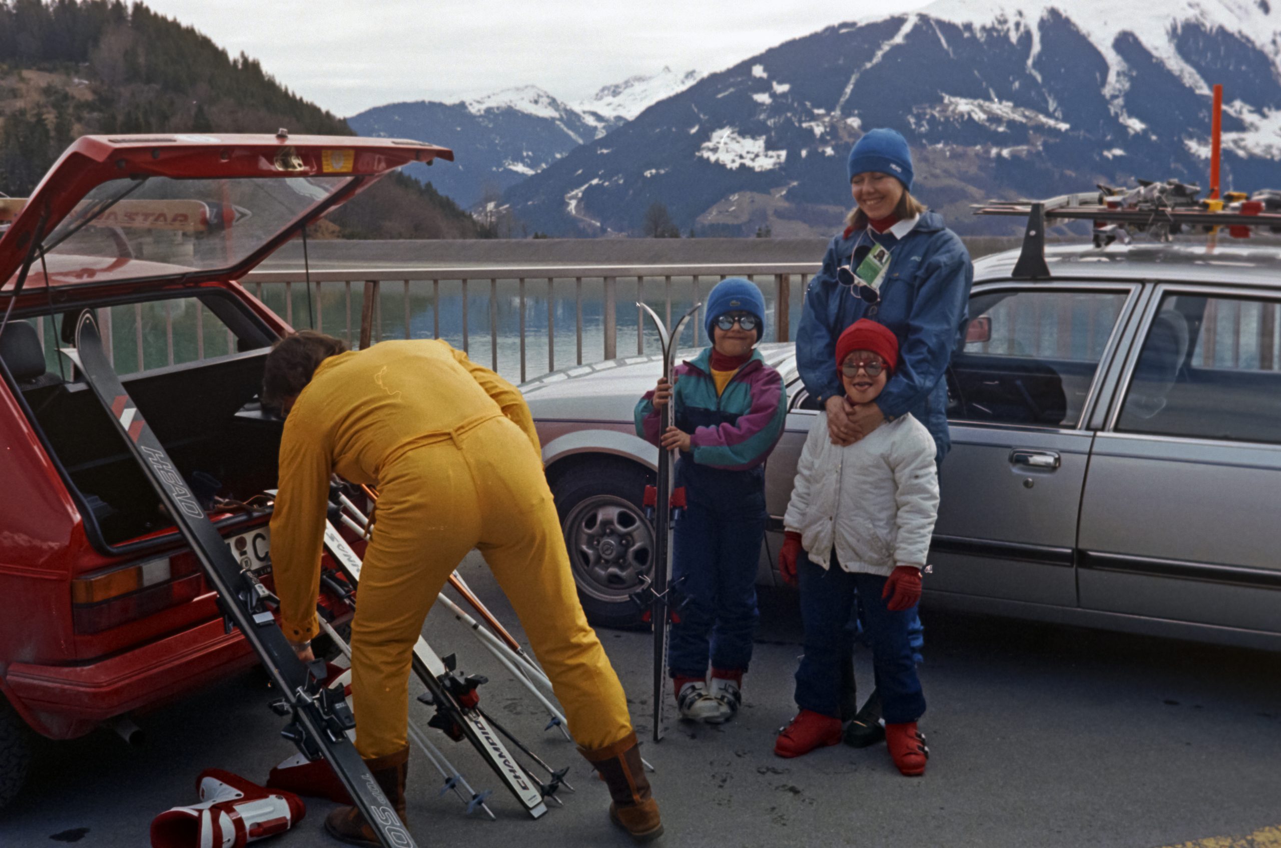 An einem Sonntag Mitte Februar lasse ich mich gerne von Annelie und Fritz Curtius überreden, mit Ihnen und ihren beiden noch kleinen Söhnen Philipp und Gordian zum Skifahren zu gehen. Von Lindau aus starten wir ins nahegelegene Montafon, in dem sich die fünf Skigebiete Golm, Silvretta Montafon, Gargellen, Silbertal-Kristberg und Silvretta-Bielerhöhe mit insgesamt 60 Seilbahn- und Liftanlagen und 225 Kilometer markierten Abfahrten befinden. Neben diesen gibt es jede Menge Langlaufloipen und markierte Skirouten sowie zwei Eislaufplätze und fünf Eisstockbahnen. Auch diverse Freeride-Gebiete sind im Montafon zu finden, beispielsweise das Novatal, das Hochjoch oder Gargellen. Auch für Freestyler ist das Montafon ein beliebtes Gebiet mit diversen Funparks, der größte befindet sich im Skigebiet Silvretta Montafon: der Snowpark Montafon am Fredakopf-Lift. Im Skiverbund mit dem Brandnertal sind insgesamt 74 Seilbahn- und Liftanlagen in Betrieb und es gibt 289,5 Pistenkilometer inkl. 58,1 Skirouten. Wir entscheiden uns für das Skigebiet am Golm und benötigen mit unserem roten und weißen Golf von Lindau für die knapp 85 Kilometer nur etwas mehr als eine Stunde