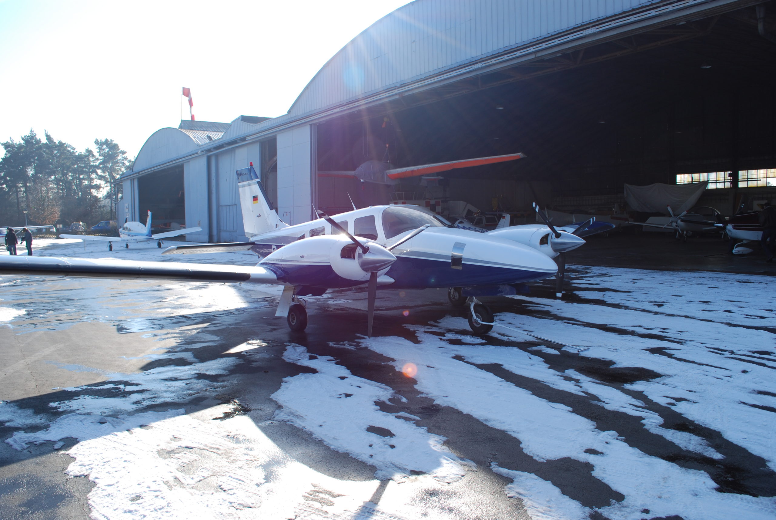 Flugplatz Schleißheim mit Sonderlandeplatz Oberschleissheim. Gleich gehts trotz Schnee vor der Hütte los. Die Piper wartet schon auf uns.
