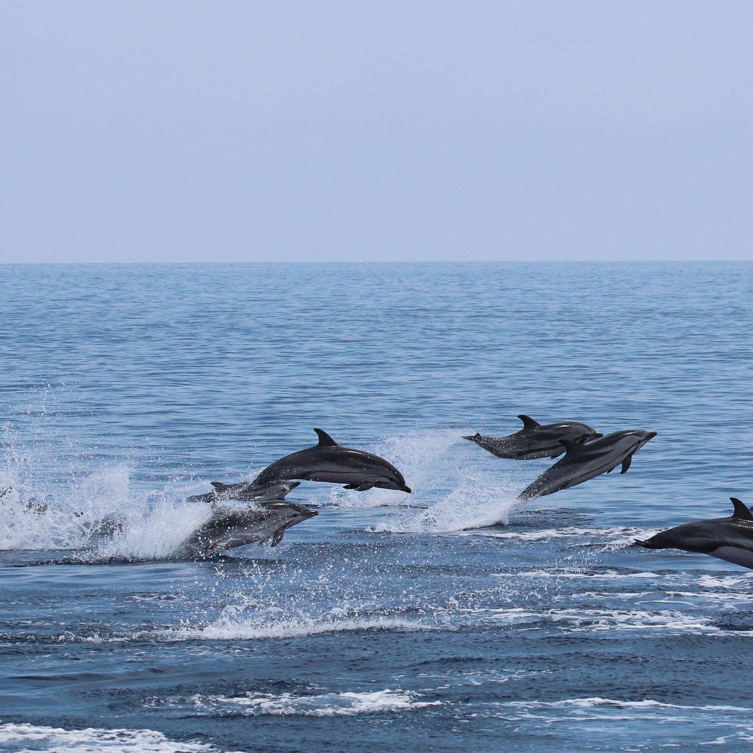 Laut der aus der Lombardei stammenden Meeresbiologin Sabina Airoldi gibt es im Mittelmeer etwa 38 000 Streifendelphine. Sie erforscht mit ihrer Organisation Tethys seit 32 Jahren Meeressäuger und setzte sich für deren Schutz ein. Italien, Frankreich und das Fürstentum Monaco haben auf ihr Betreiben hin im nordwestlichen Mittelmeer ein Schutzgebiet für Delphine und Wale geschaffen. Das sogenannte Santuario Pelagos reicht von der Côte d’Azur bis nach Sardinien und von dort bis an die toskanische Küste. Es ist 87 500 Quadratkilometer gross und beherbergt acht Arten von Delphinen und Walen. Auch uns begleiteten auf unserer Fahrt von der Insel Porquerolles nach Barcelona immer wieder Delphin Schulen