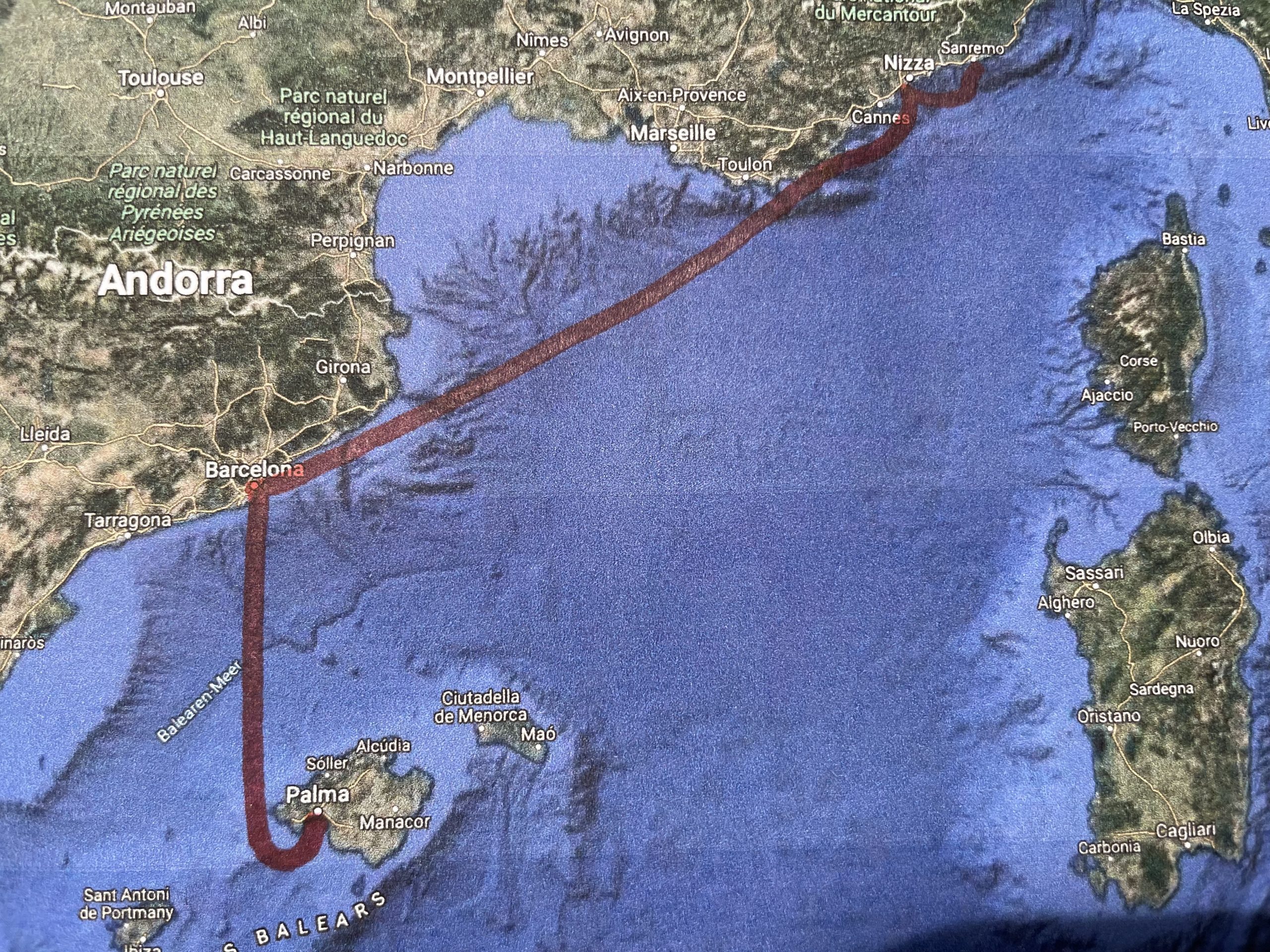 Die von uns auf der Fairline insgesamt zurückgelegte Strecke von San Remo bis Palma betrug ca. 800 km. Das längste Teilstück von St. Tropez durch das Golf von Lyon bis nach Barcelona dabei 430 km. Wie wir nach unserer Einfahrt in den Hafen von Barcelona feststellten, entsprach diese Entfernung auch exakt der Reichweite unserer Fairline, da der Tank bei unserer Ankunft vollständig leer war. Wir hatten auf unserer erstaunlich ruhigen Fahrt - normalerweise tobt hier der Mistral - unsere Fahrweise auch mehrfach dem sichtbar zu hohen Verbrauch angepasst, um gut in Spanien anzukommen