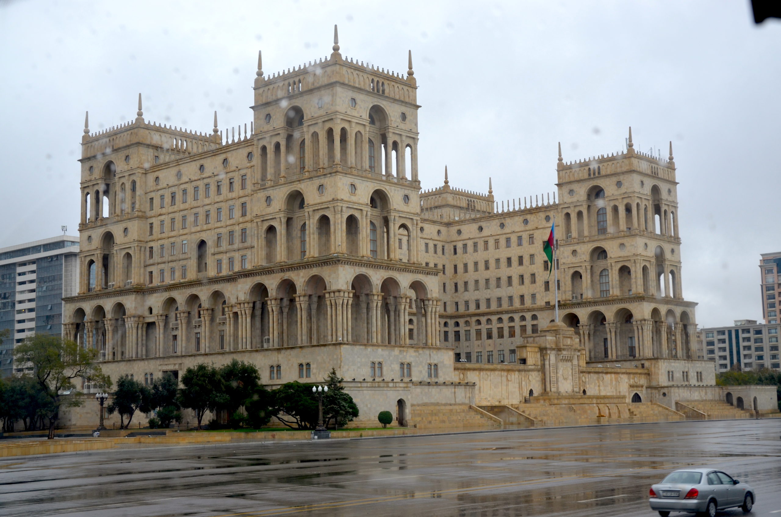 Der Palast der Regierung von Aserbaidschan am Prachtboulevard der Innenstadt. Das Land wird seit Jahrzehnten effizient durch die Familie Aliyev geführt und kontrolliert und zum eigenen Nutzen wirtschaftlich optimiert