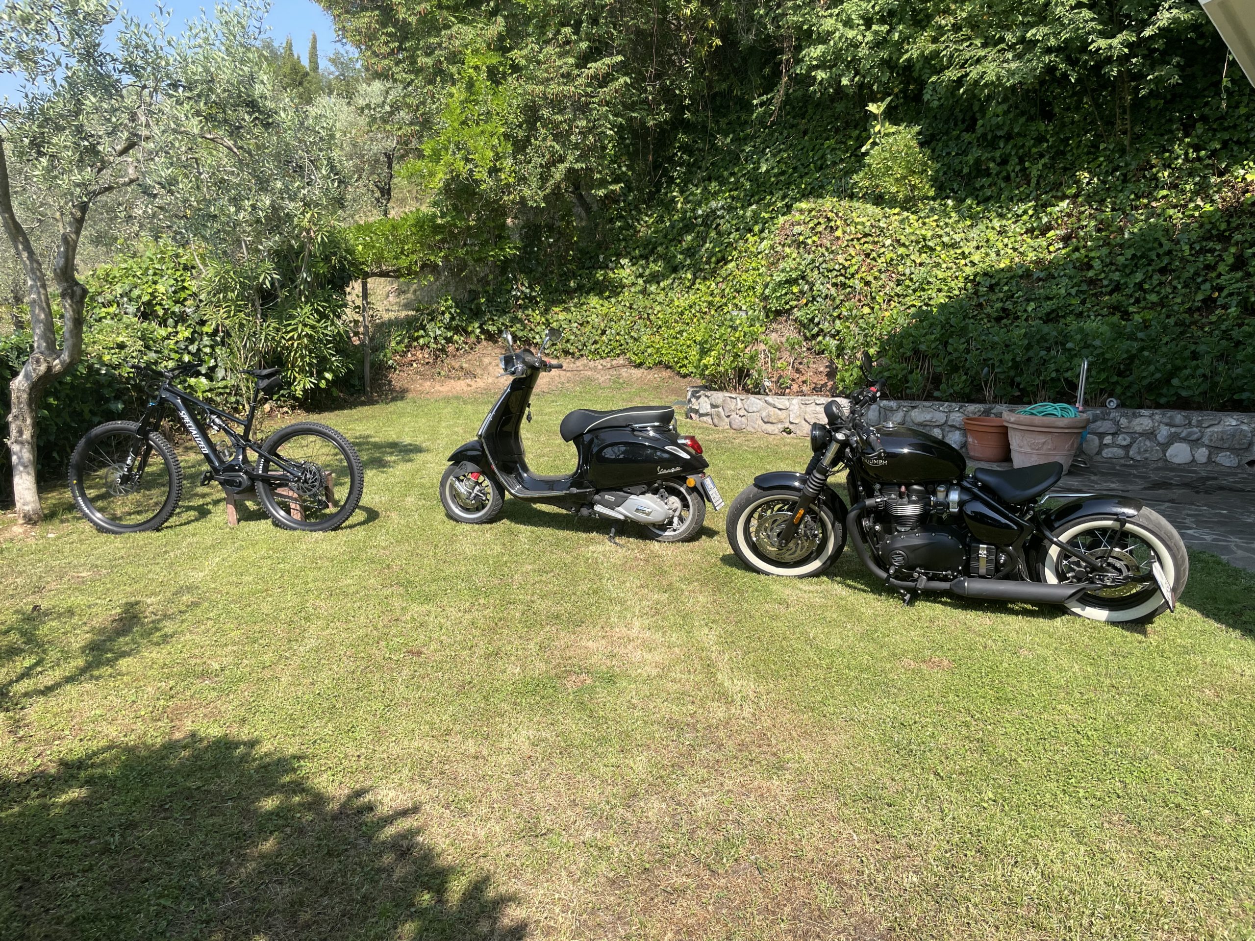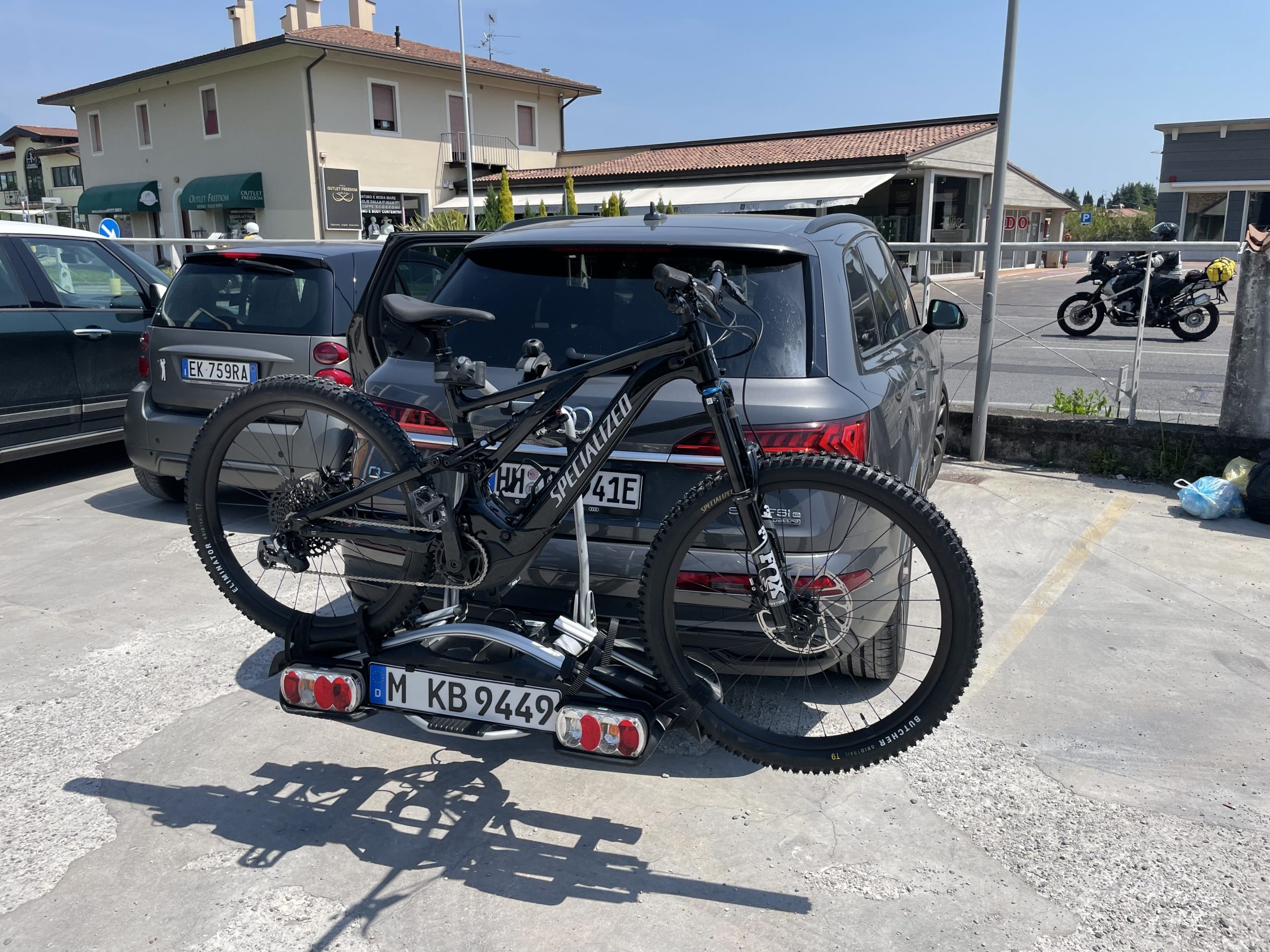 Mit Sannes Audi Q7 und ihrem Fahrradträger war der Transport des neuen Bikes nach Gardone kein Problem .... leider schrottete ich das schöne Auto meiner Schwägerin zwei Tage später aus Unachtsamkeit ziemlich massiv - beide Türen rechts - und das bei langsamer Geschwindigkeit auf unserem eigenen Grundstück