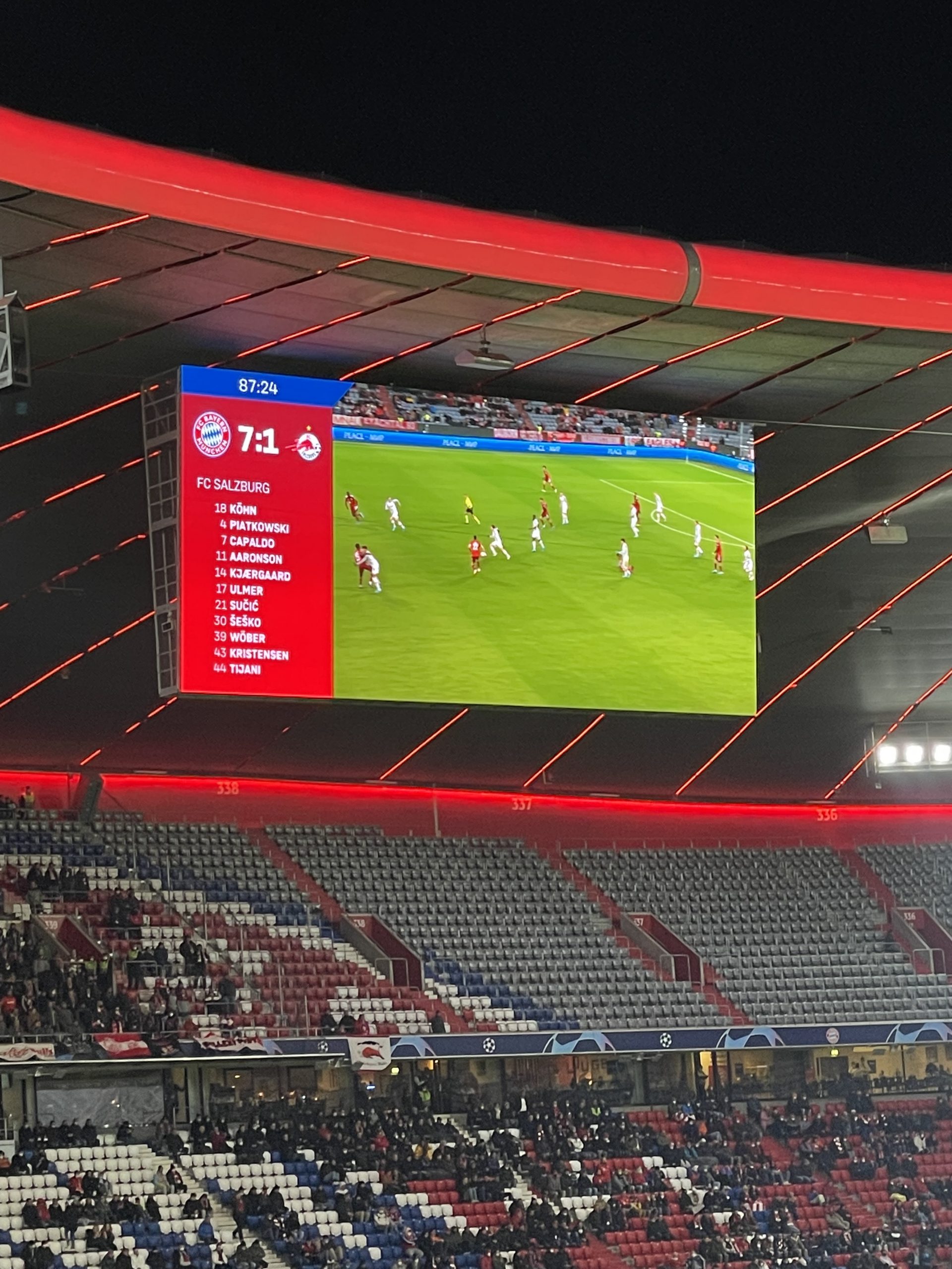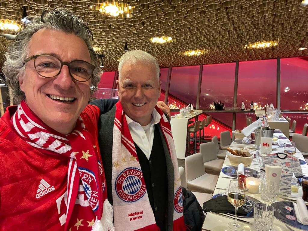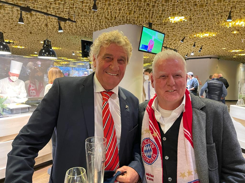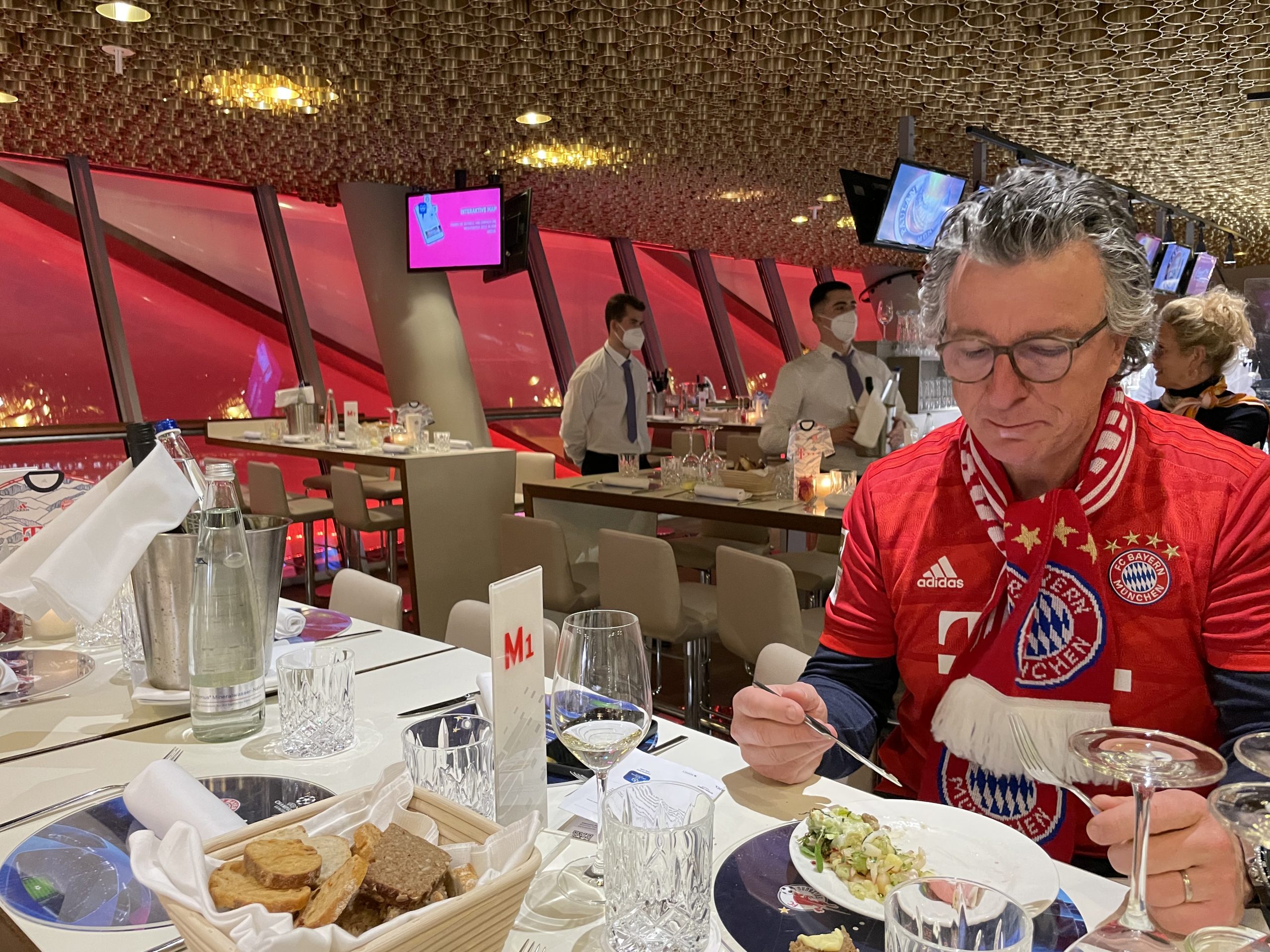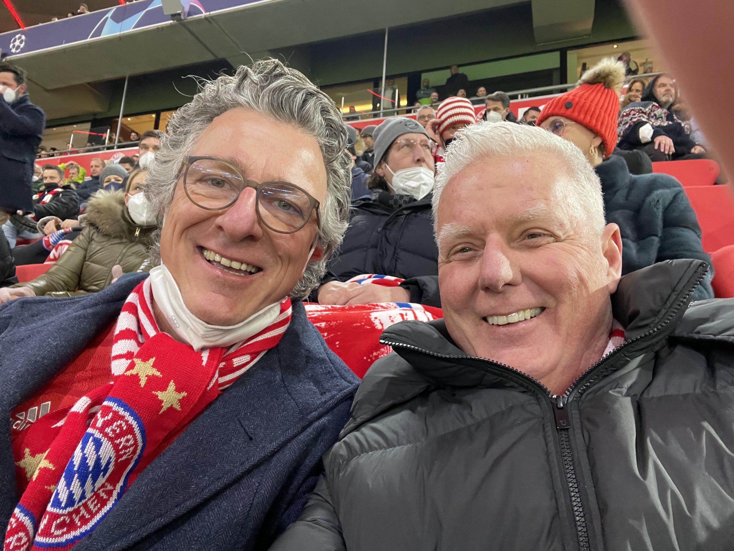 Zum Rückspiel des Achtelfinalspiels des FC Bayern gegen RB Salzburg bin ich von Jürgen Groth und seinen beiden Conrad Geschäftsführerkollegen Ralf Bühler (CEO) und Jürgen Kassel (CFO) zum Rückspiel in die Allianz Arena eingeladen. Beim Hinspiel in Salzburg konnten die Bayern erst sehr spät zu einem glücklichen 1:1 Unentschieden ausgleichen. Auf Basis der wenig überzeugenden schwachen letzten Bundesliga Spiele hatten wir Bedenken, daß es ein gefährlicher Abend werden könnte. Dennoch tippten wir alle auf einen Bayern Sieg. Um vor dem Spiel ausreichend Zeit zum persönlichen Austausch beim Abendessen zu haben, waren wir bereits 2 1/2 Stunden vor Spielbeginn am Eingang der Welcome Zone West der Allianz Arena gestanden. Dort mussten wir uns jedoch noch eine knappe halbe Stunde gedulden, bis uns finaler Einlass erteilt wurde. Der Abend hat uns nicht enttäuscht, denn der FC Bayern München steht jetzt im Viertelfinale der Champions League. Angeführt vom herausragenden Dreifach-Torschützen Robert Lewandowski hat Bayern München die nächste Runde der Champions League erreicht. Nach dem 1:1 bei RB Salzburg gewann der sehr offensiv eingestellte deutsche Rekordmeister das Achtelfinal-Rückspiel deutlich klar mit 7:1 (4:0). Der Weltfußballer Lewandowski erzielte dabei innerhalb von elf Minuten einen Hattrick. Vor 25.000 Zuschauern verwandelte Lewandowski zunächst zwei an ihm verschuldete Foulelfmeter (12. und 21./nach Videobeweis), kurz darauf traf er zum dritten Mal (23.) und stellte damit den Rekord für den schnellsten Hattrick ab dem Anpfiff in der Champions League auf. Es folgten Tore von Serge Gnabry (31.), Thomas Müller (54./83.) und Leroy Sane (86.), für Salzburg war Maurits Kjaergaard (71.) erfolgreich. Seit dem Finalsieg 2013 gegen Borussia Dortmund hatten die Münchner nur im Jahr 2019 den Einzug in das Viertelfinale verpasst. Sie haben damit weiter die Chance auf zwei Titel in dieser Saison. Die Auslosung für das Viertelfinale findet am 18. März statt, die Spiele werden am 5./6. April sowie am 12./13. April ausgetragen.