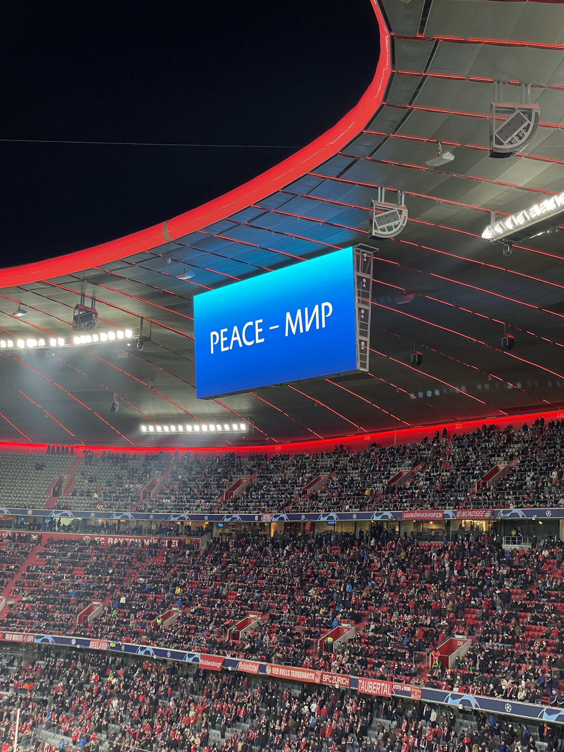 Die Allianz Arena war - passend zu unseren Fassungslosigkeit hinsichtlich des aktuellen Kriegs der Russen gegen ihre brüderlichen Nachbarn - solidarisch in den Nationalfarben der Ukraine beleuchtet