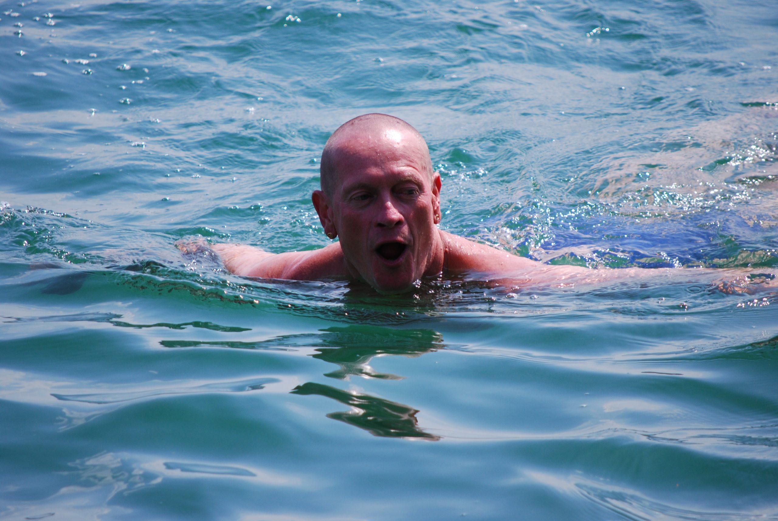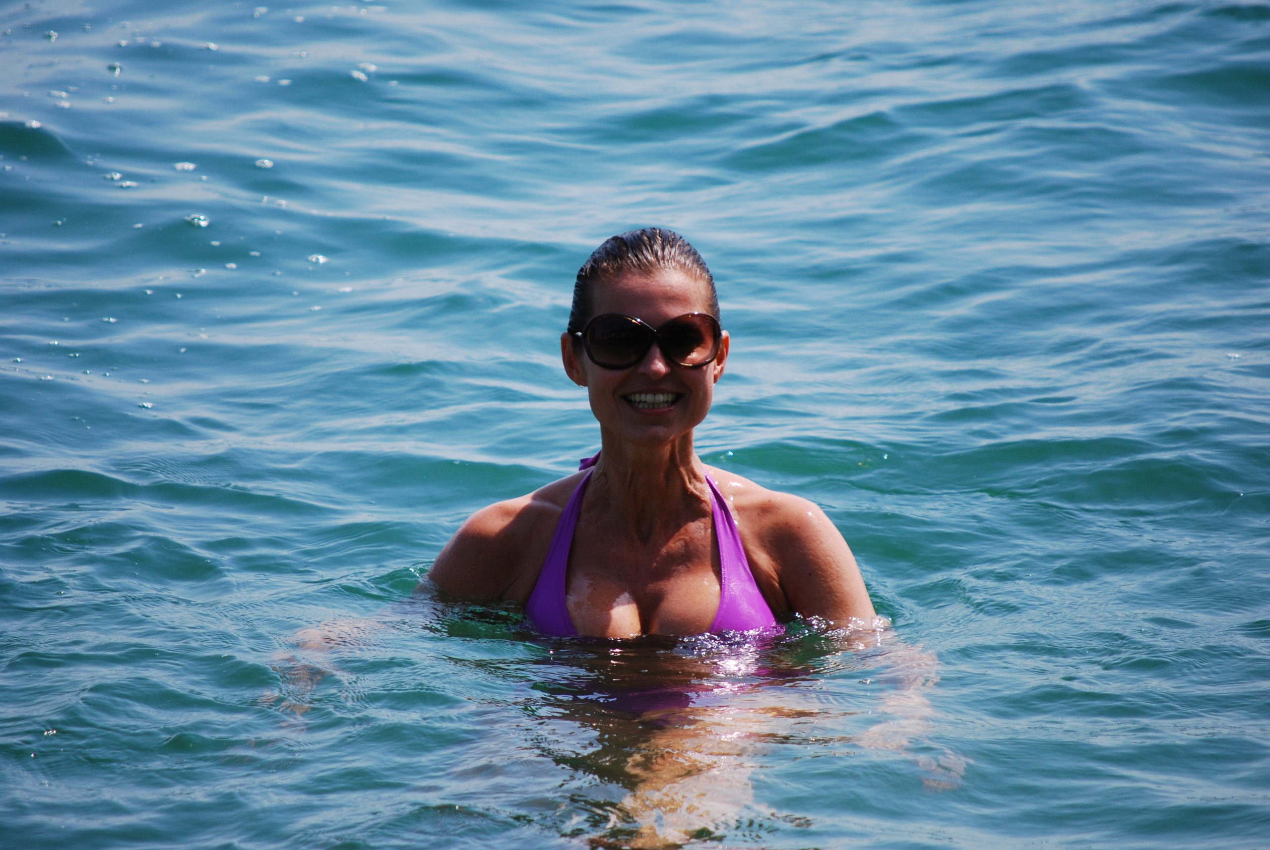 Annette mit Günther beim Badespaß in unserem Beachclub