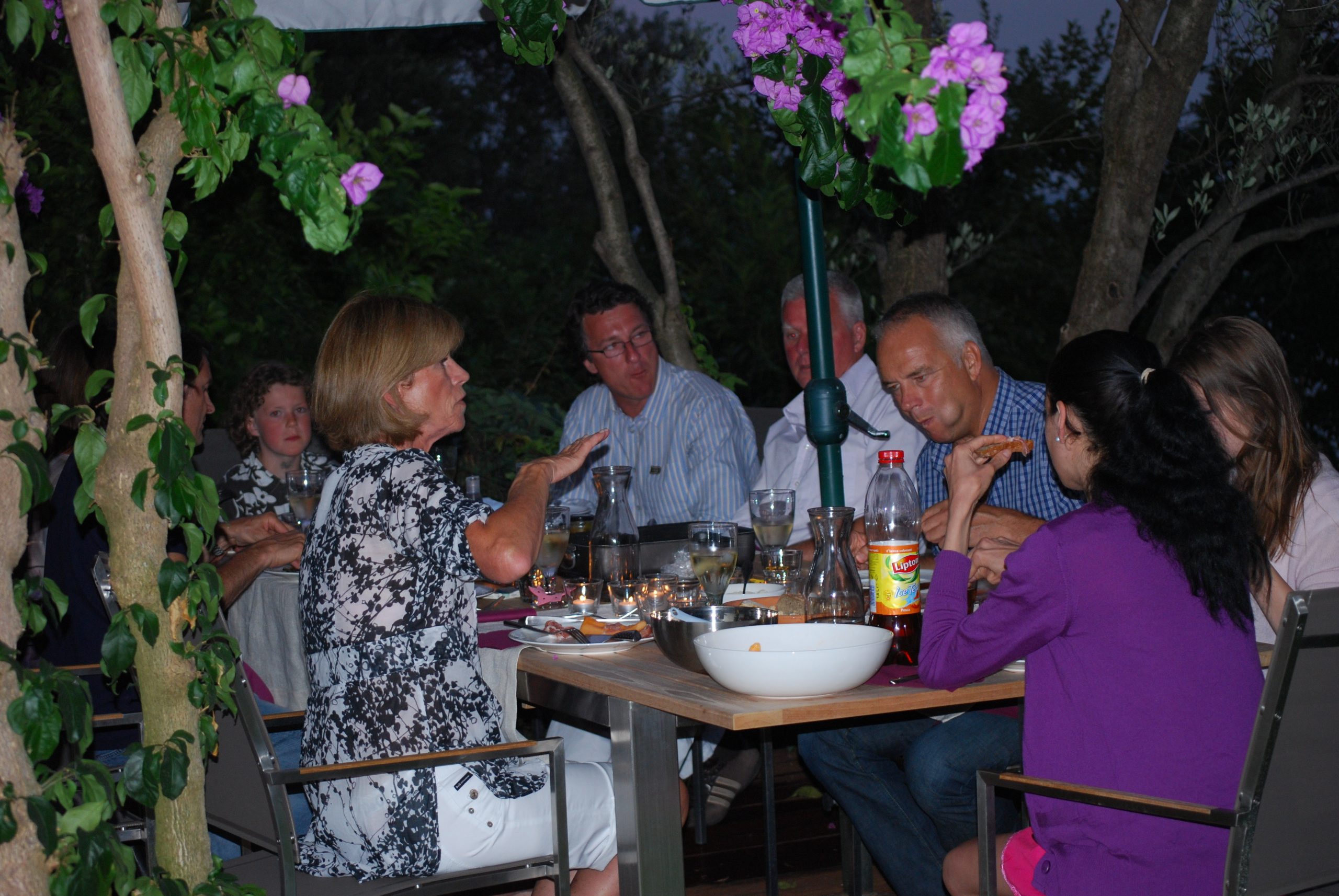 Ette in bester Feierlaune beim Abendessen in unserem Haus