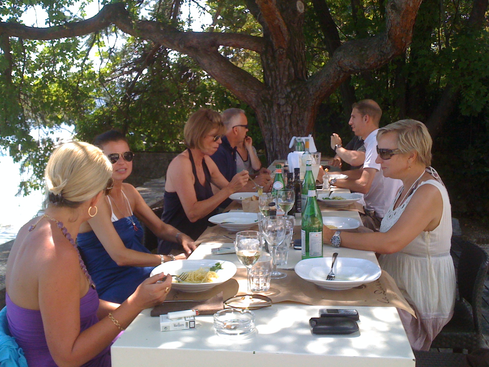 Beim Lunch an unserem Lieblingstisch im Darsena ... mit uns sind auch Barbara Hartmann und Ellen Seehusen sowie Hellmanns unterwegs