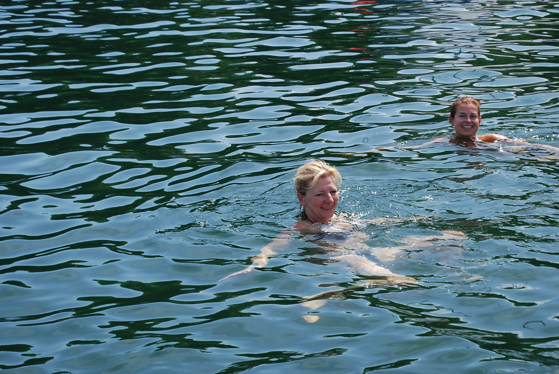 Zwischendrin dringend mal ins Wasser hüpfen ... und dort erfrischen, wie es Nina und Ette hier gerade machen
