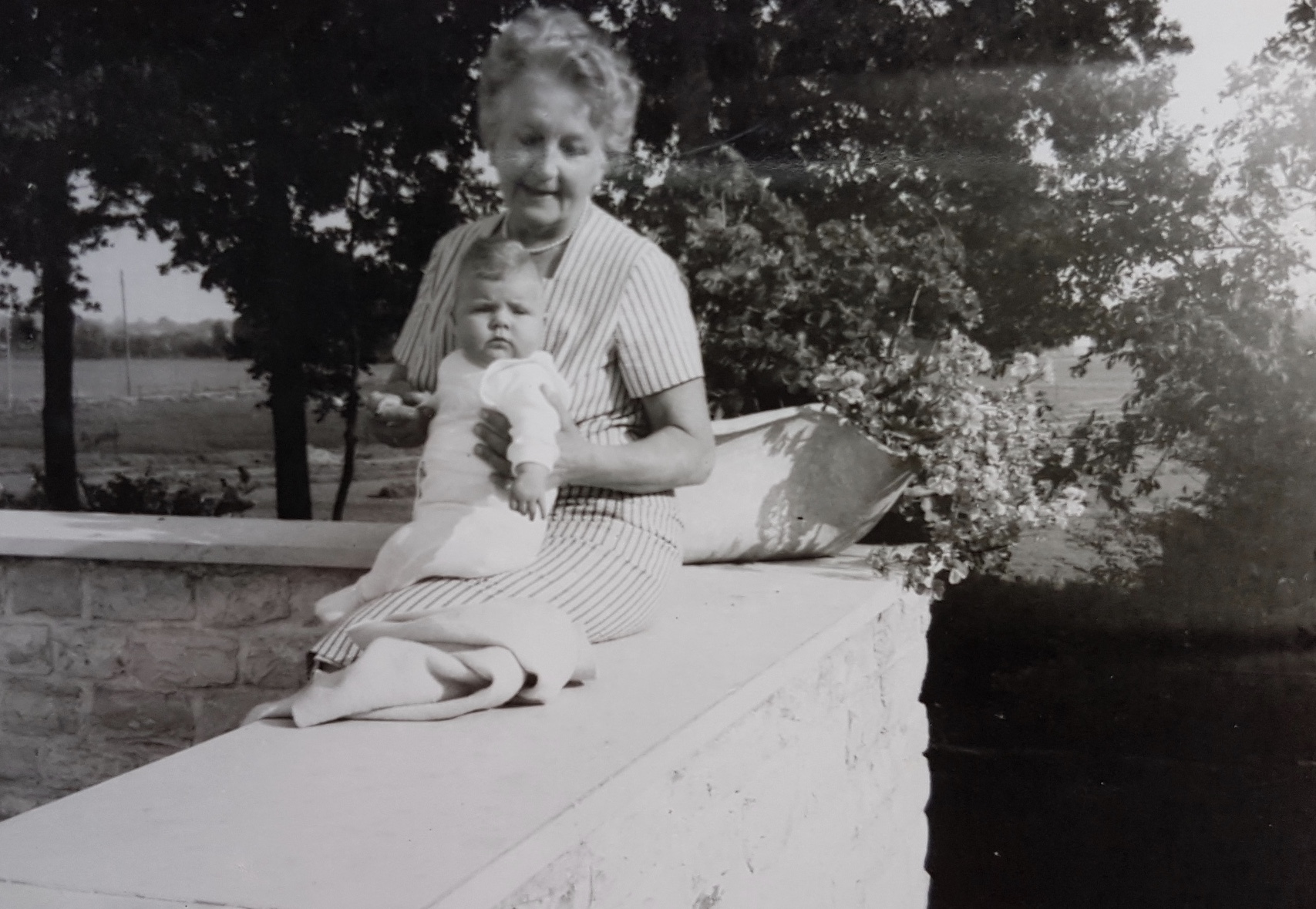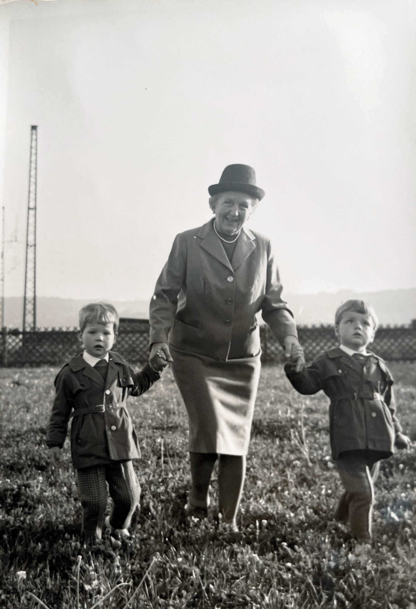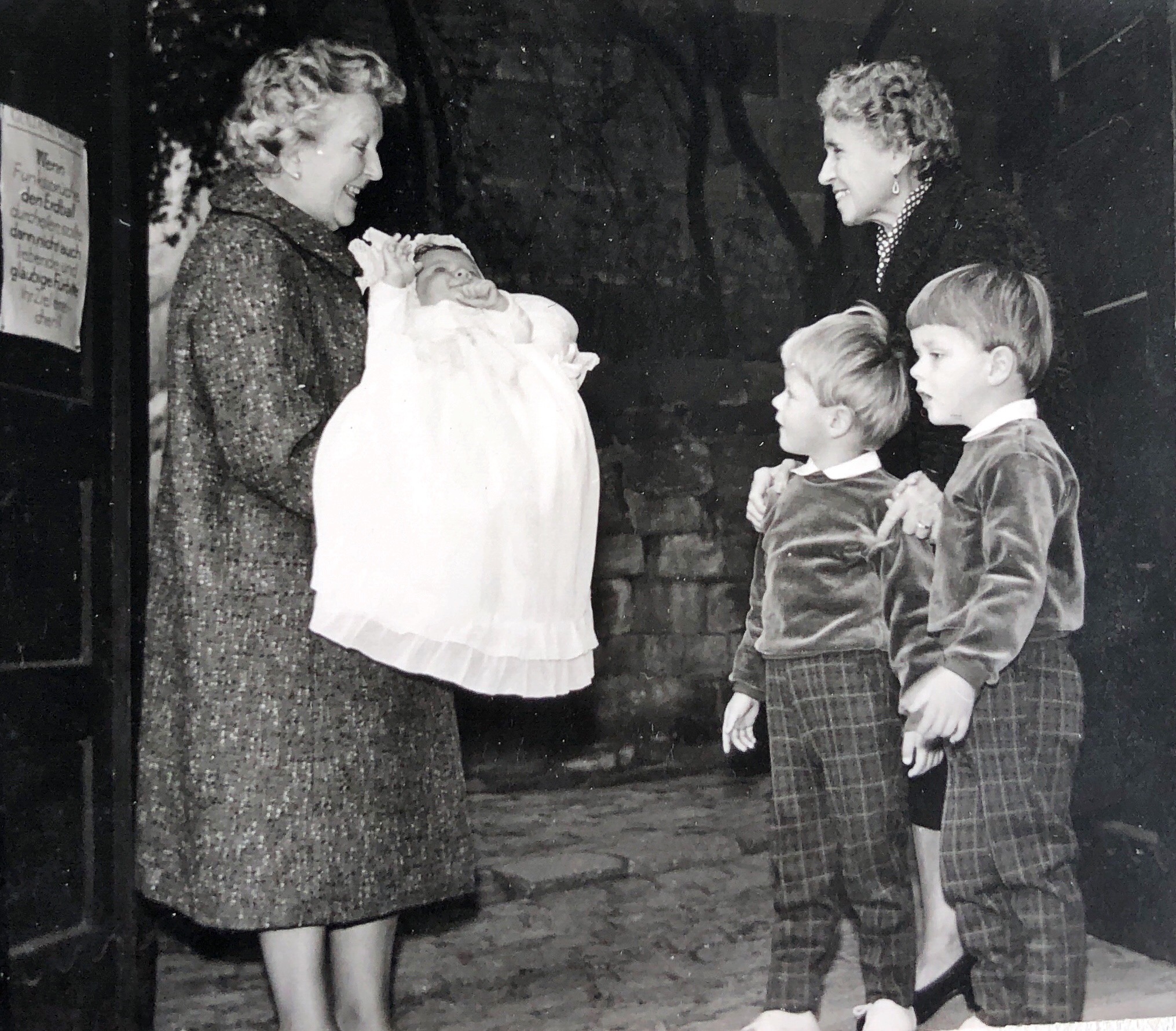 Oma Kleebinder hat die Enkeltochter Ulrike auf dem Arm und Oma Kamm versucht die beiden Jungs in Schach zu halten