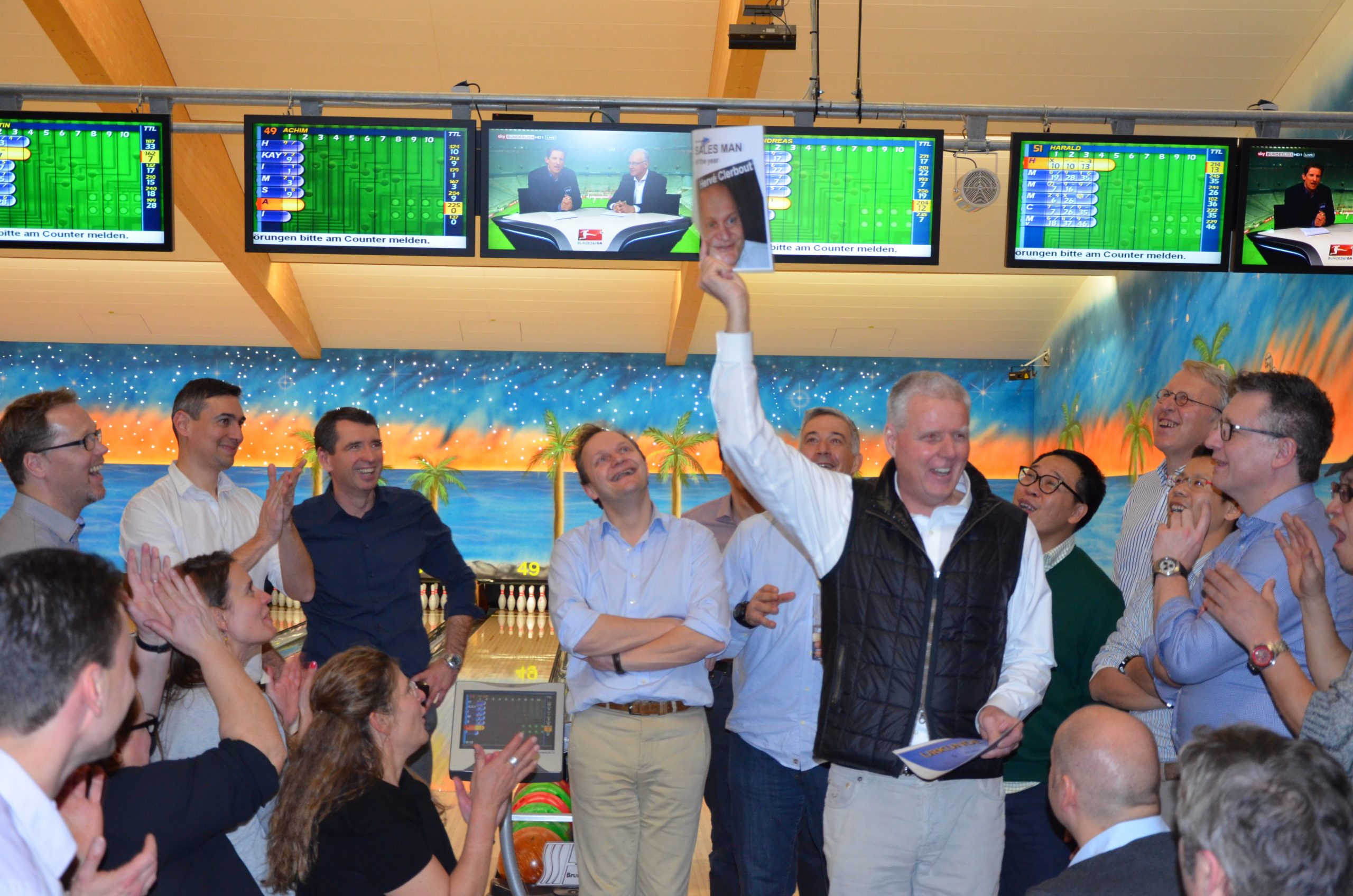 Gruppenbild mit Dame beim Bowling. Europa, Asien und USA in Eintracht, wenns ums Gewinnen geht