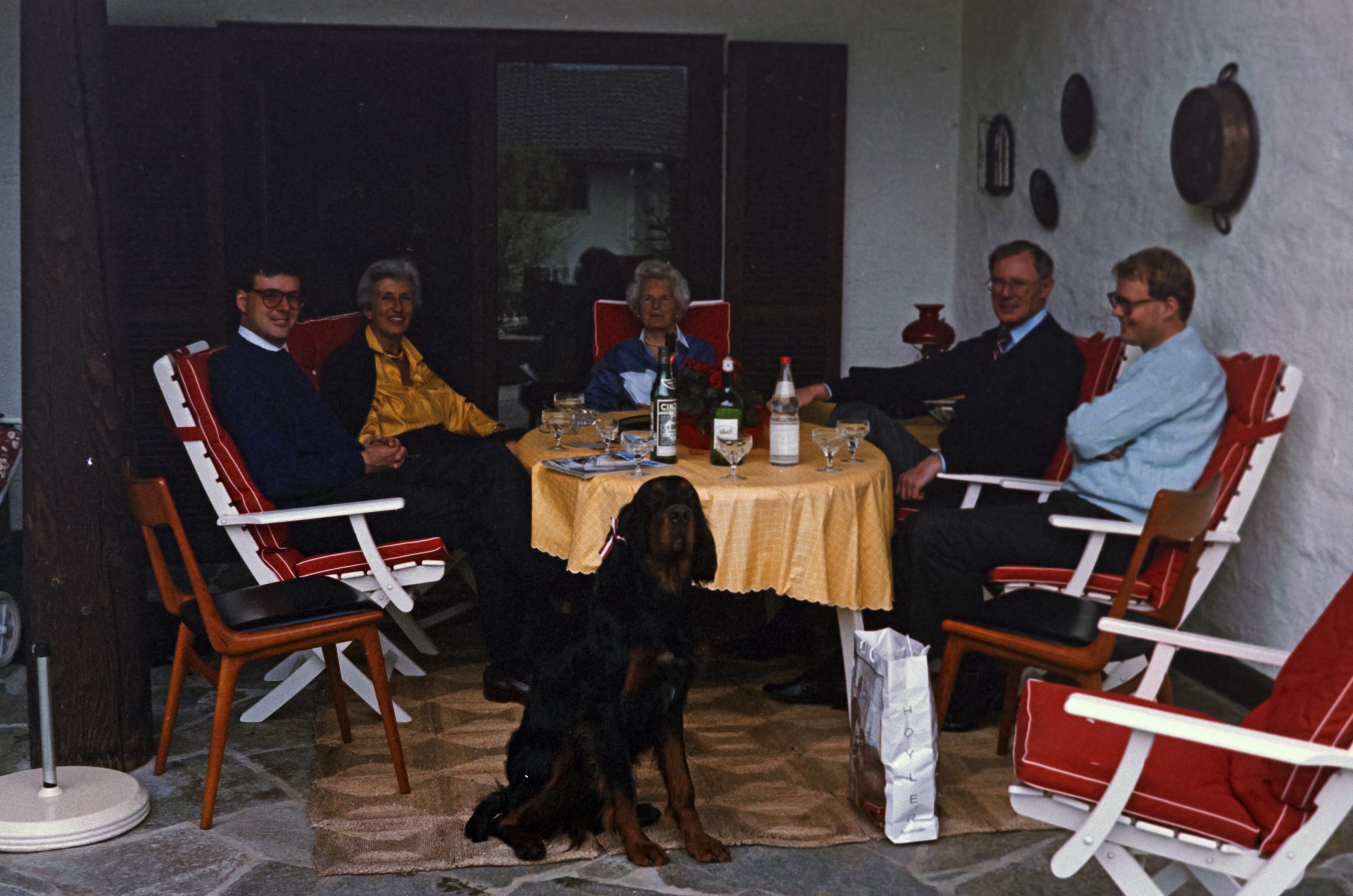 Unser Gordon Setter hat ganz zu Recht im Mittelpunkt Platz genommen. Die ganze Familie, meine Eltern, Nicis Mutter und mein Bruder sind ordentlich stolz.