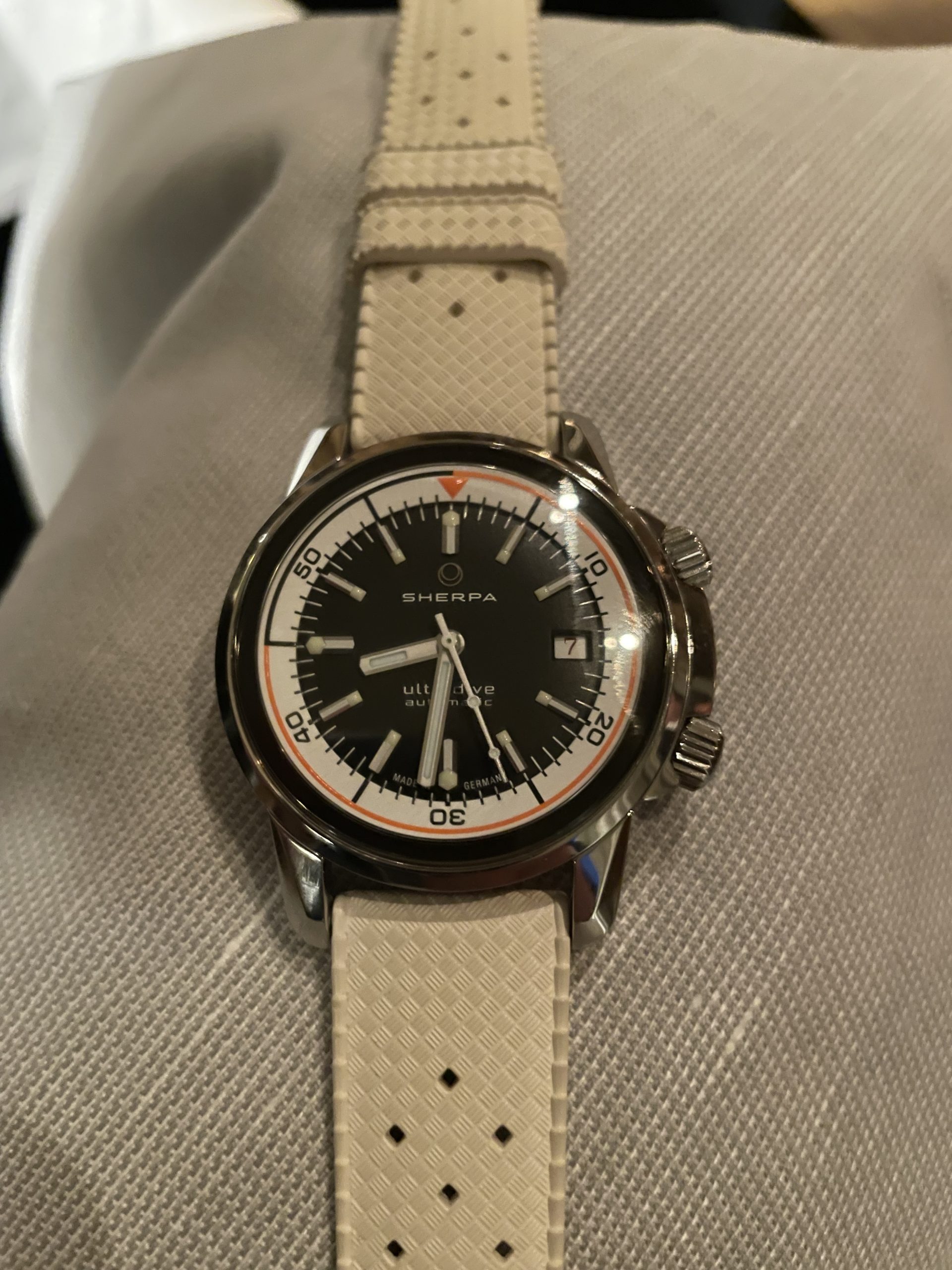 Gastgeber war Herr Koch, neben ihm sitzen Simone Richter von Sinn sowie die Ehefrau des Gründers der Marke Sherpa. Vor Tisch sehen wir den Uhrenexperten Rüdiger Bucher