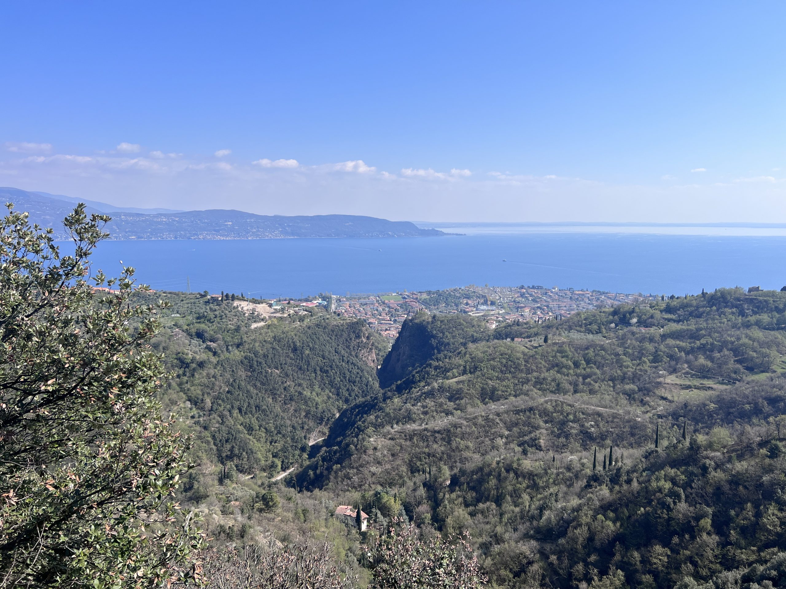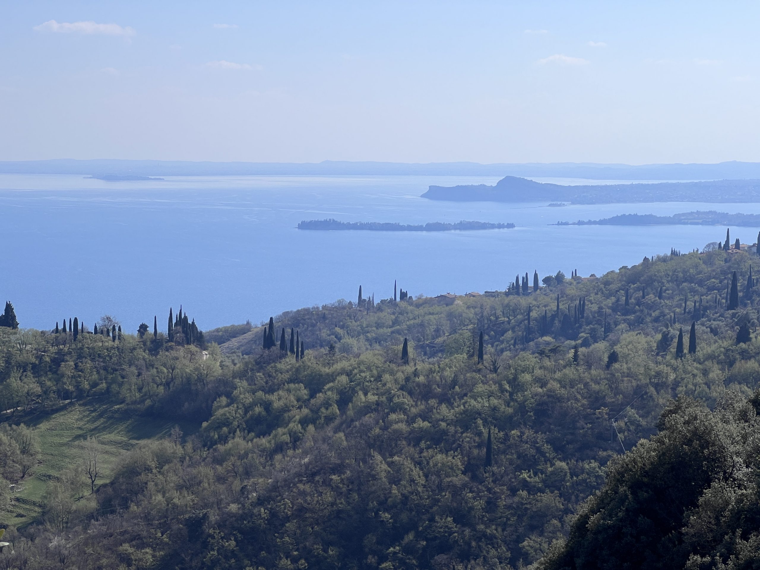 Im Süden liegt die Isola del Garda, der Rocco di Manerba und am Horizont die Halbinsel Sirmione