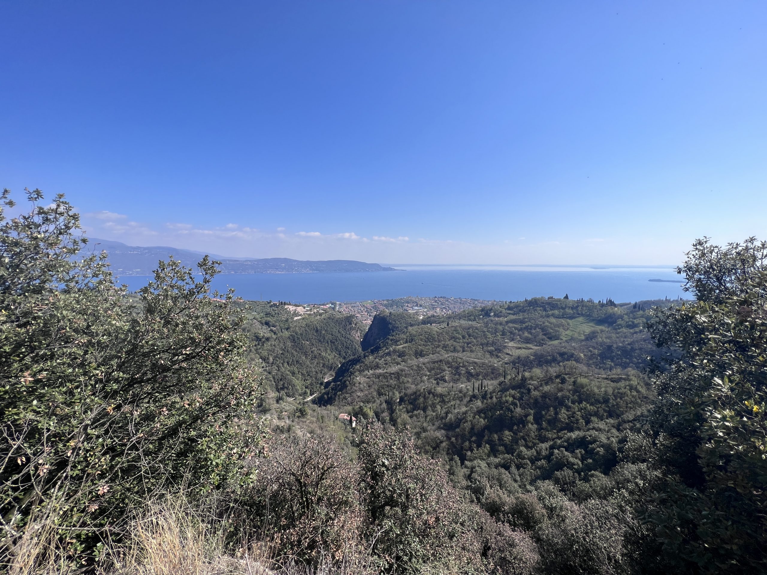 Von Mathias Gehrckens erhalte ich seine Schlafzimmersicht von San Felice auf den Monte Pizzocolo mit Schnee am Gipfel