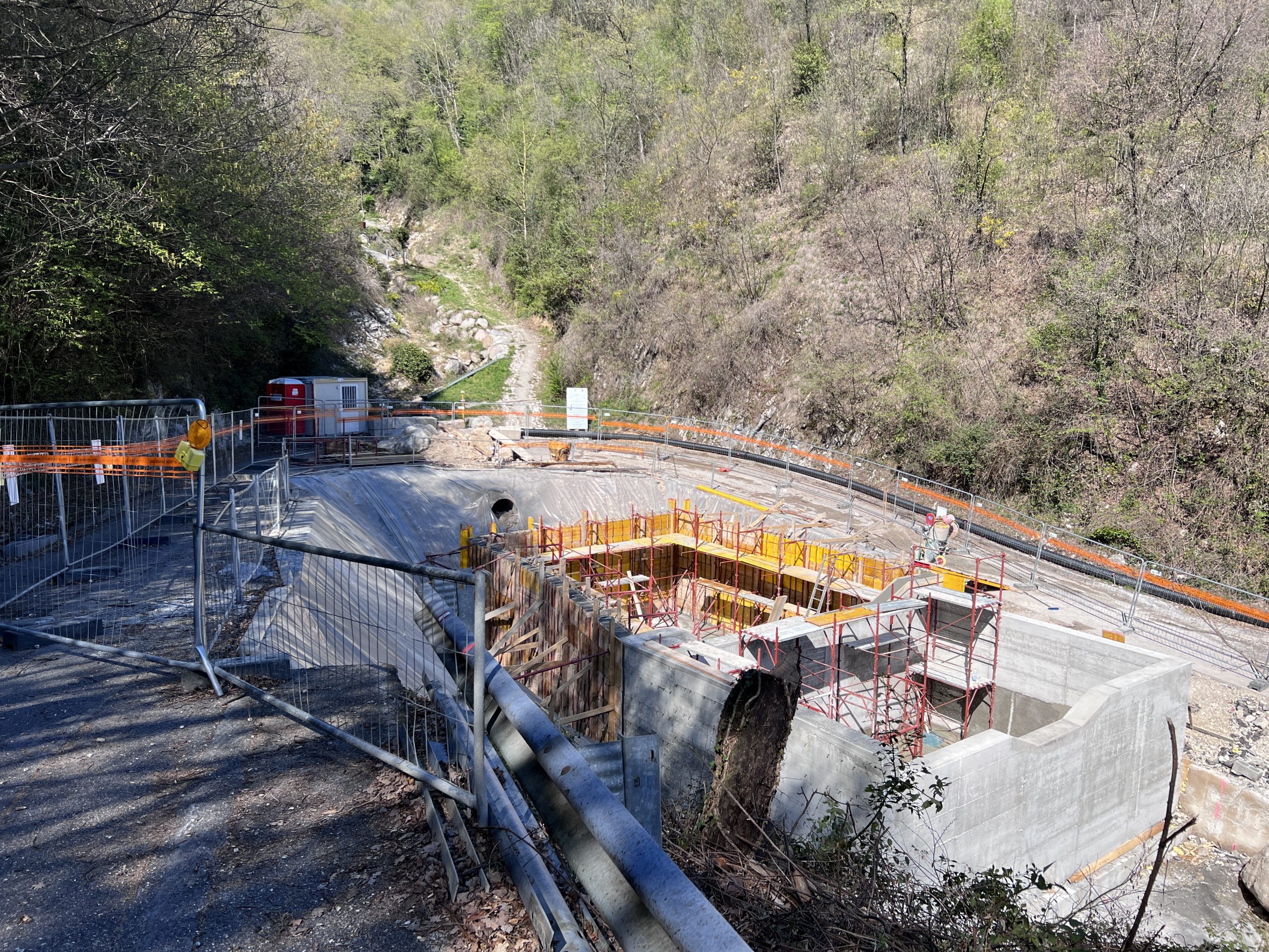 An der Via della Calma - der Verbindungsstrasse zwischen Supiane und San Michele- wird wie bereits bei uns an der Abzweigung nach Fasano ein großes Auffangbecken für den Wildbach gebaut