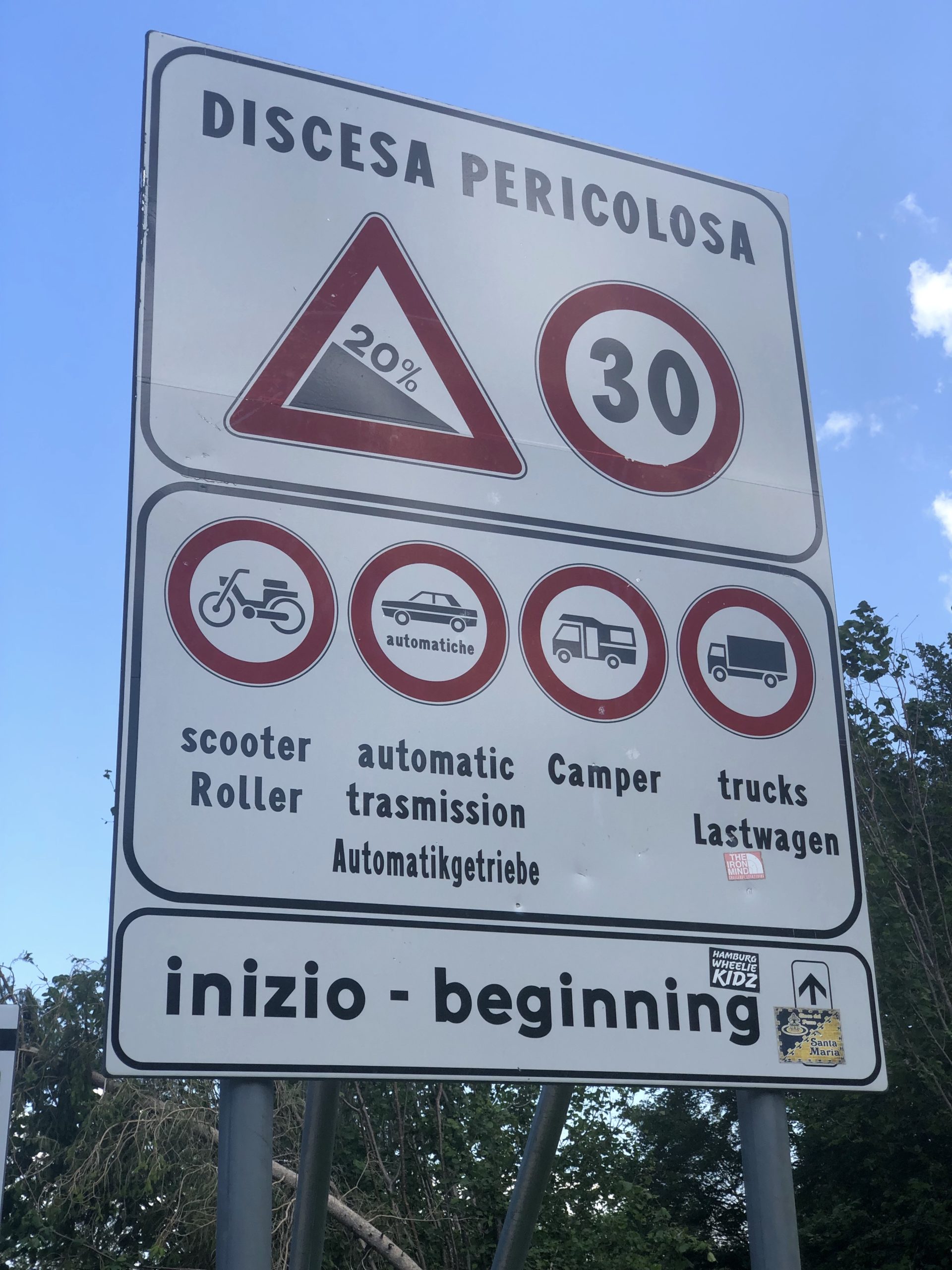 In Realität ist die Strecke um einiges steiler und gefährlicher als auf diesem Photo .... davon konnten auch drei Hamburger Harley Fahrer Ihr Leid singen. Bei allen versagten die Bremsen durch Überhitzung und sie mussten erst einmal einen längeren Stop zur Abkühlung einlegen.