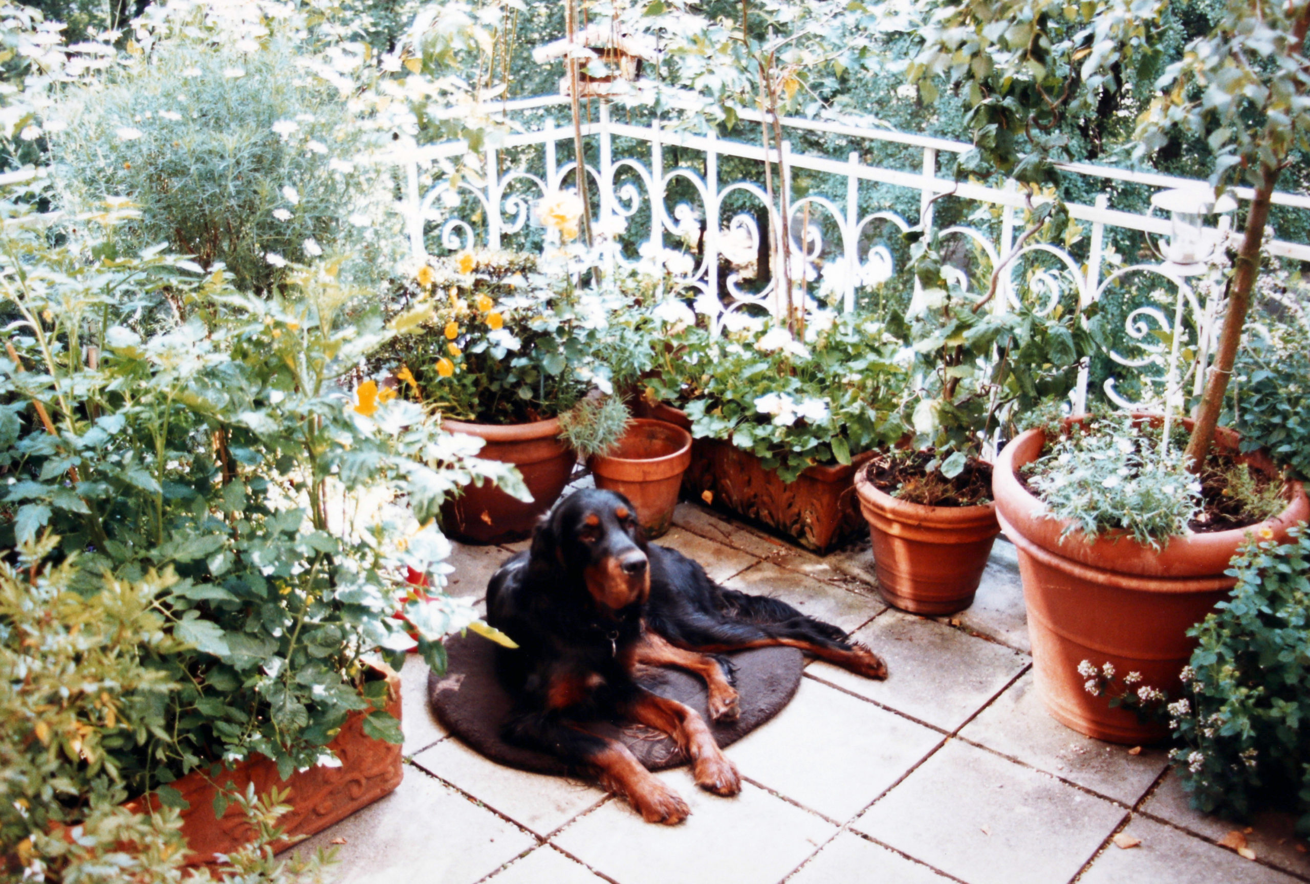 Im Sommer liebte MacBeth seinen Platz auf unserem schönen Balkon direkt oberhalb des Eisbachs im Englischen Garten, von dem aus er als Welpe auch tatsächlich einmal in den Bach stürzte