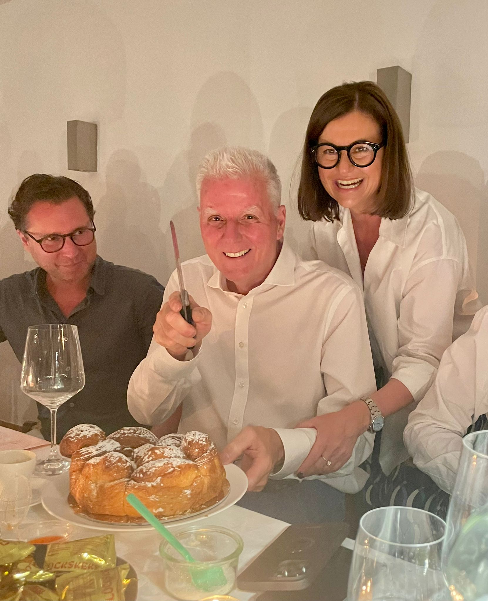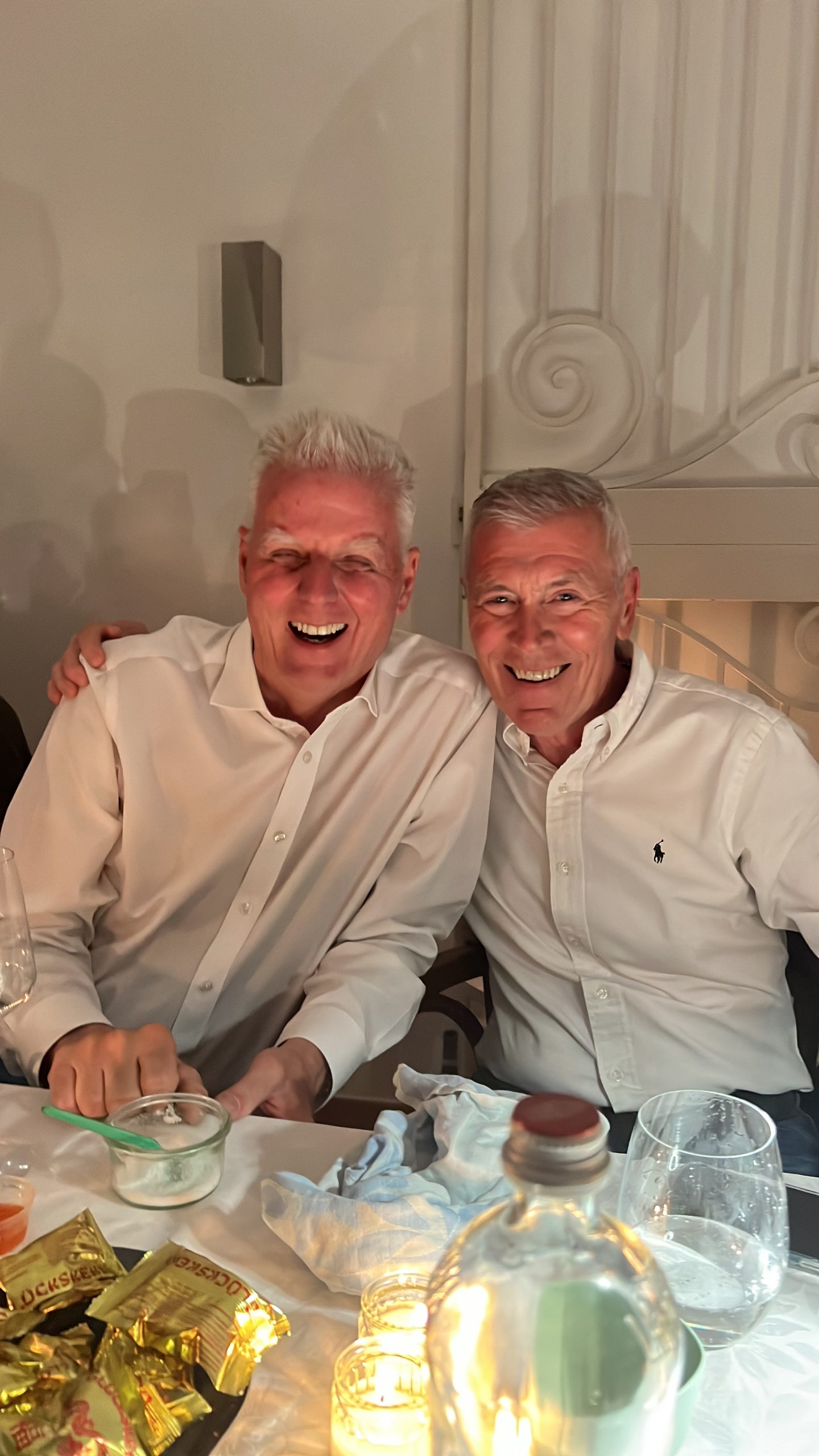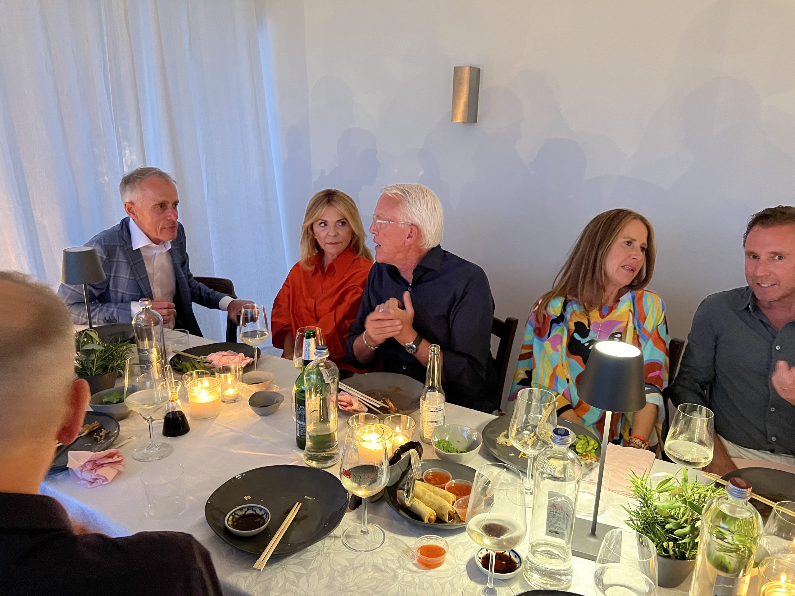 An meinem 64. Geburtstag am Samstag, den 3. Juni 2023 stand um 22.12 Uhr ein 100%iger Vollmond im Kalender und so sollte sich der Abend eigentlich ideal für ein Come Together mit Family & Friends im Garten der Via Panoramica in Gardone-Riviera anbieten. Annette und ich haben uns daher sehr auf einen Schwung überwiegend bewährter Gäste unserer lokalen Gardesana Connection gefreut. Durch ein für diesen Abend für 20 Uhr vorhergesagtes Gewitter mit Starkregen und Temperatursturz sind wir mit trockenen und warmen Sitzplätzen für 20 Gäste gefordert. Bei Oscar - dem Besitzer des nächstgelegenen Lokals Casa Mia in San Michele - besorge ich mir drei zu verbindende Tische für eine sechs Meter lange Tafel und entsprechend viele Stühle und transportiere sie mit der Hilfe von Mathias, Annette und René problemlos in unserem Anhänger zur Via Panoramica und am nächsten Tag wieder zurück. Das Restaurant Brunati in Salò bereitet ein köstliches asiatisches Essen vor, welches ich gemeinsam mit Ettes Schwester Sanne abhole und schon am Vortag habe ich bei unserem Getränke-Lieferanten Gardesana Bevande ausreichend Vorräte für die gesamte Sommersaison eingekauft. Ette übernimmt die Deko und das Tischdecken und so können wir unsere Birthday Party bereits um 19 Uhr starten und in deren Rahmen ein sehr gut sortiertes Brunati Asia Sushi Dinner geniessen. Der Starkregen blieb zum Glück aus - er kam dafür mit voller Wucht am folgenden Abend - bewölkt war es trotzdem und die Bewunderung eines komplett sichtbaren Vollmonds hat sich dadurch erübrigt. Die Temperatur blieb in einem angenehmen Rahmen, wodurch wir auch den gesamten Abend bis spät nachts auf der unteren Terrasse an der langen Tafel vor dem offenen Kamin sitzen bleiben konnten. Man berichtete von vielen guten Gesprächen und durch einige neue Paarungen auch über ganz andere Themen als bei den sonst üblichen Verdächtigen. Ein wunderbarer Geburtstags-Abend, an den ich mich sehr gerne zurück erinnere. Vielen Dank, daß ihr da wart.