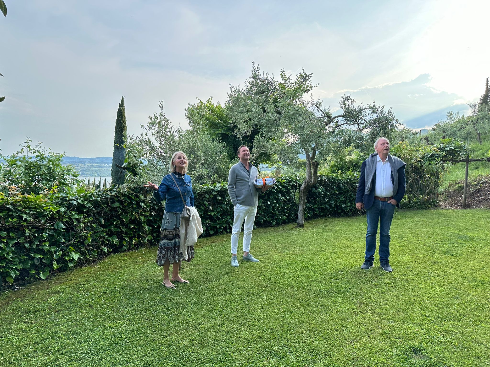 Birgid und Will Lieser checken die Lage im Garten ... und Andreas Stehmann kam zum ersten Mal vom Comer See zu uns