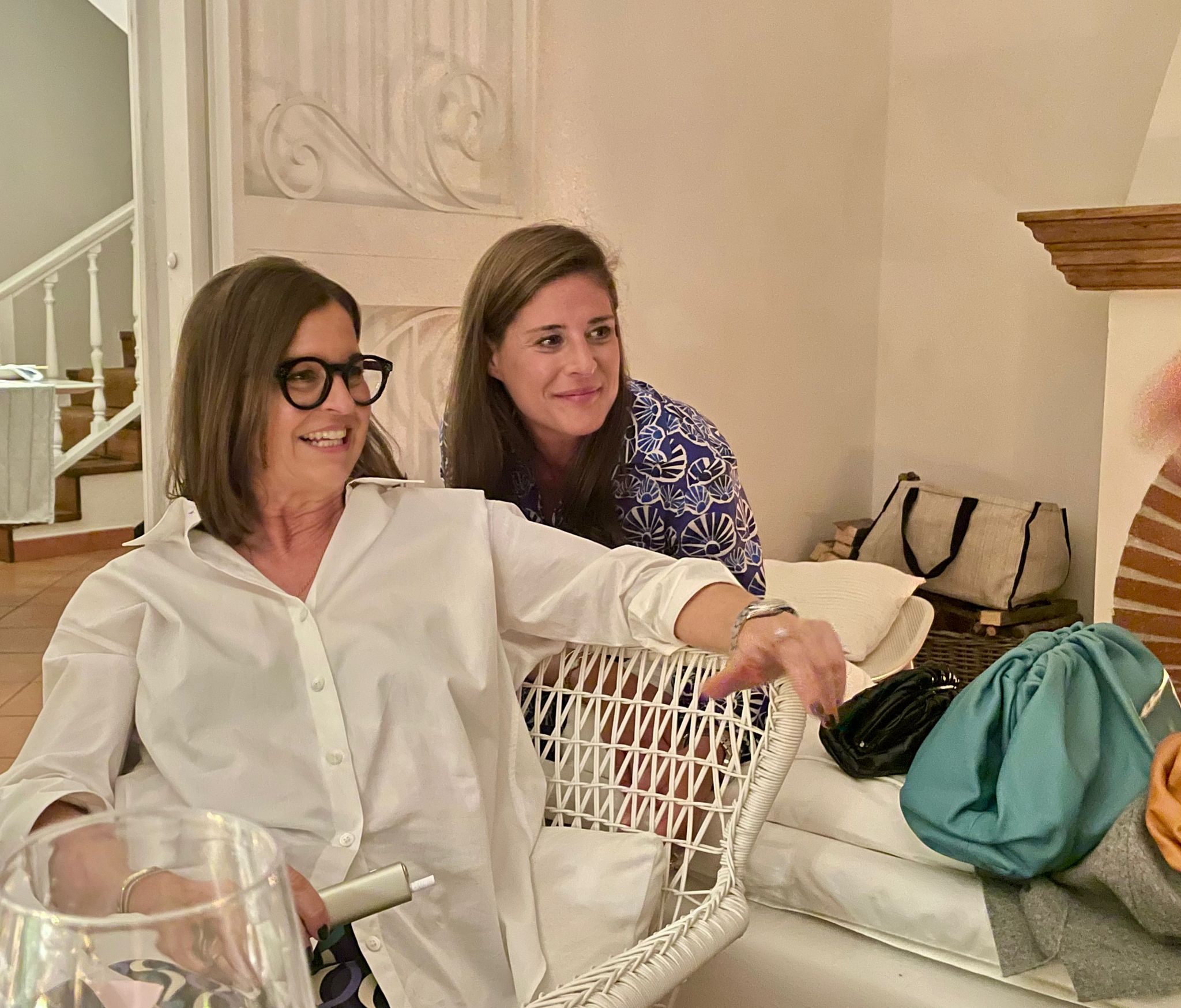Eva und Sanne im angeregten Gespräch ... Mathias und Christian sind interessierte Zuhörer