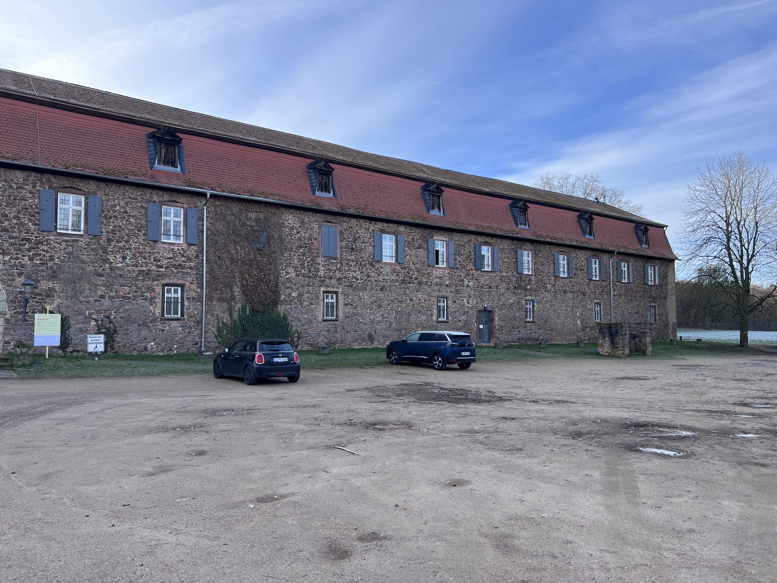 Mathias, Christian und ich landen im hochherrschaftlichen Hotel Jagdschloß Kranichstein am Stadtrand von Darmstadt