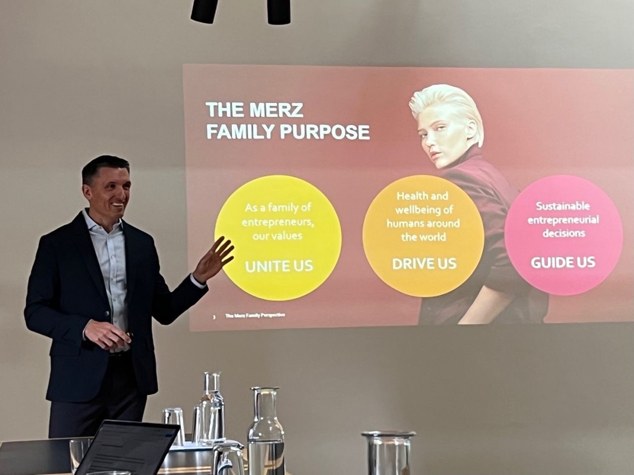 Christian Baatz ist einer der drei Gesellschaftervertreter, der uns über den Purpose des Familienunternehmens Merz sehr sympathisch aufklärt. Alexander König ist deutscher Chef der "Botox" Sparte ... was auch bei Merz ein extrem stark wachsendens Geschäft ist
