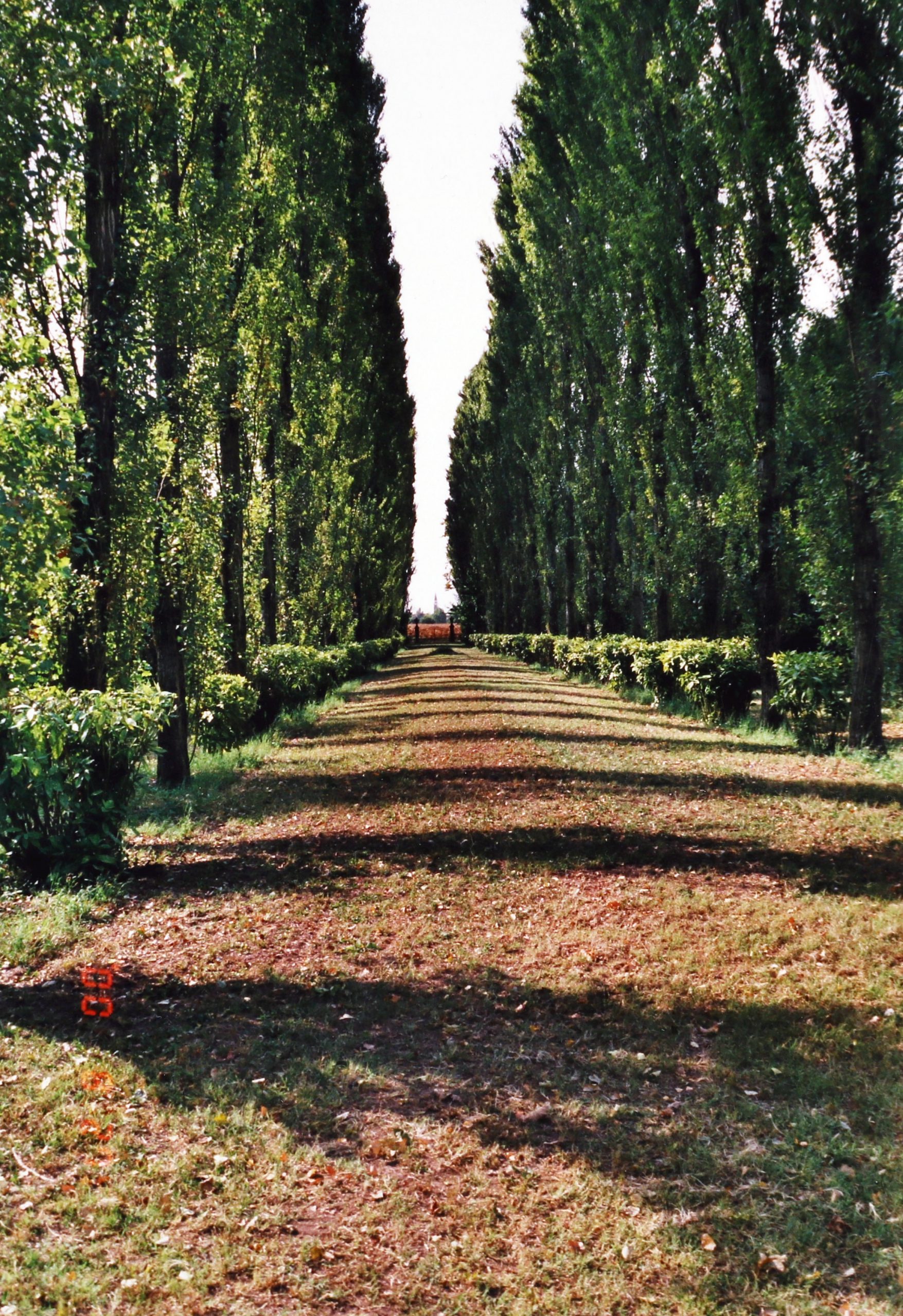 Obwohl es schon August ist, stehen die Bäume noch im saftigen Grün ... im Hintergrund das Gebäude der Kellerei