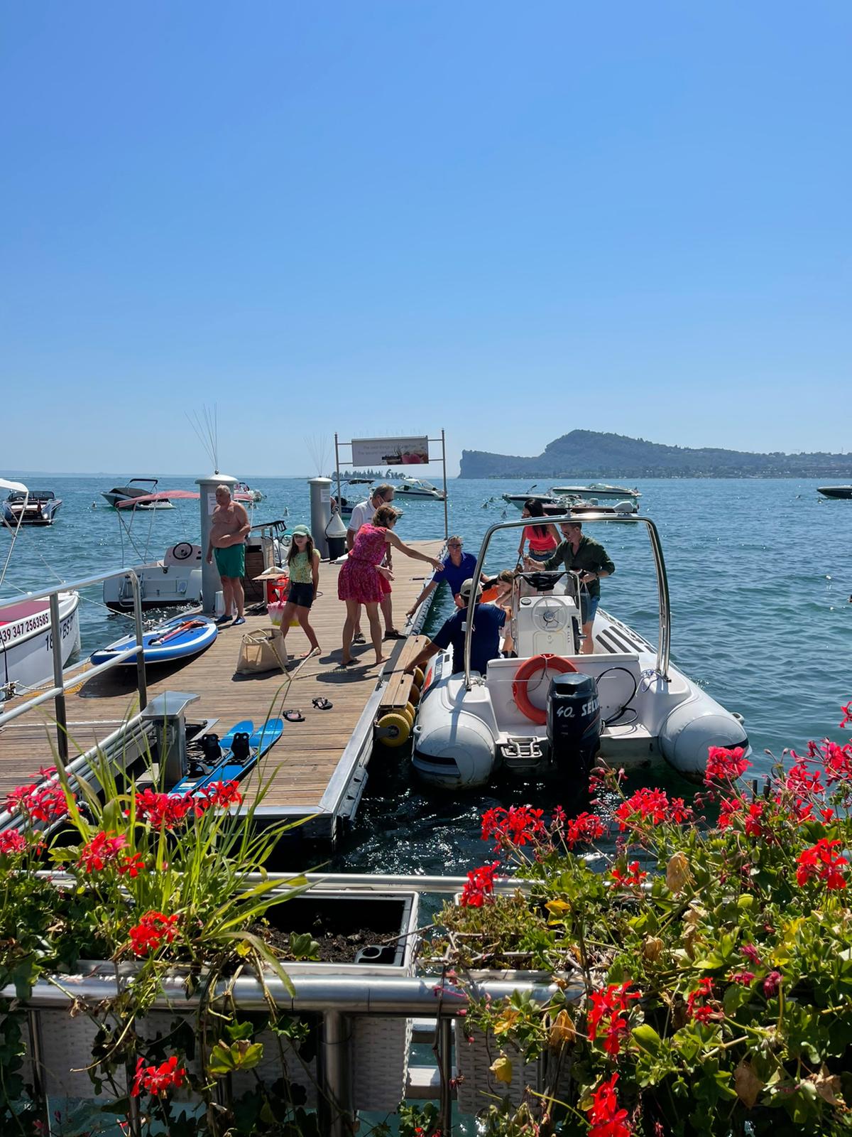 Die Familie Hackner kam mit Roman und Ulla per Boot aus Lazise ... Ette und ich mit der Super Florida aus Salò