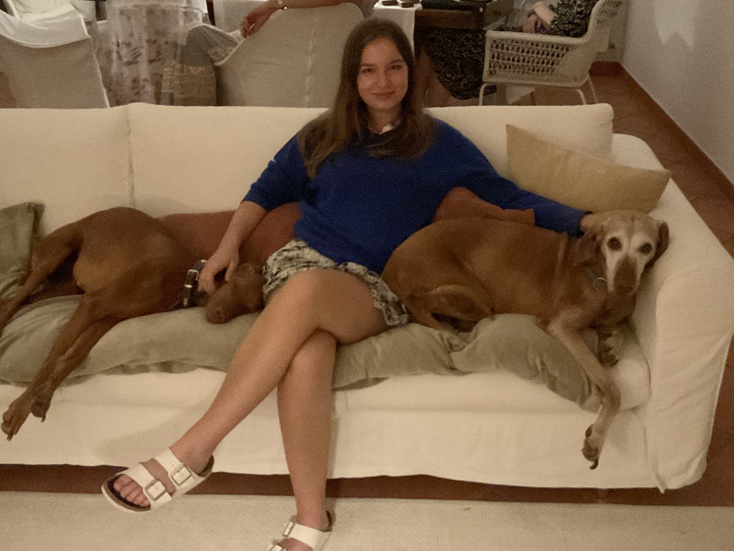 Irene und Hans Liebler besuchten uns zum Abendessen und eine ihrer Töchter outete sich als ziemlich Hunde begeistert und bespasste Ginger und Tati auf dem Sofa