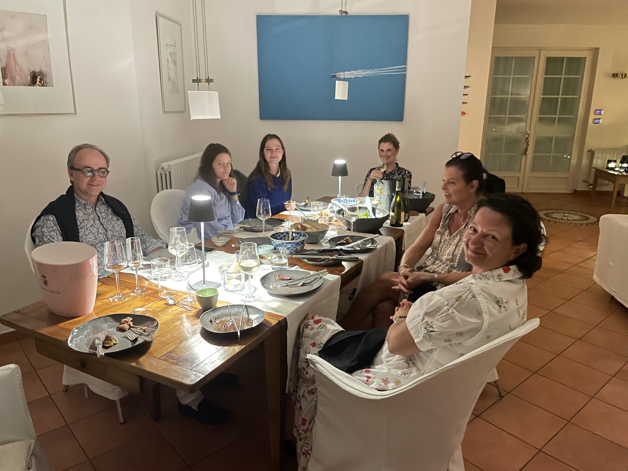 Am Ferragosto Sonntag waren wir mit Uschi, Karl, Eva und Thomas zum Dinner im Casino, wo ich zufällig Sabine Nedelchev (Elle - CR) traf