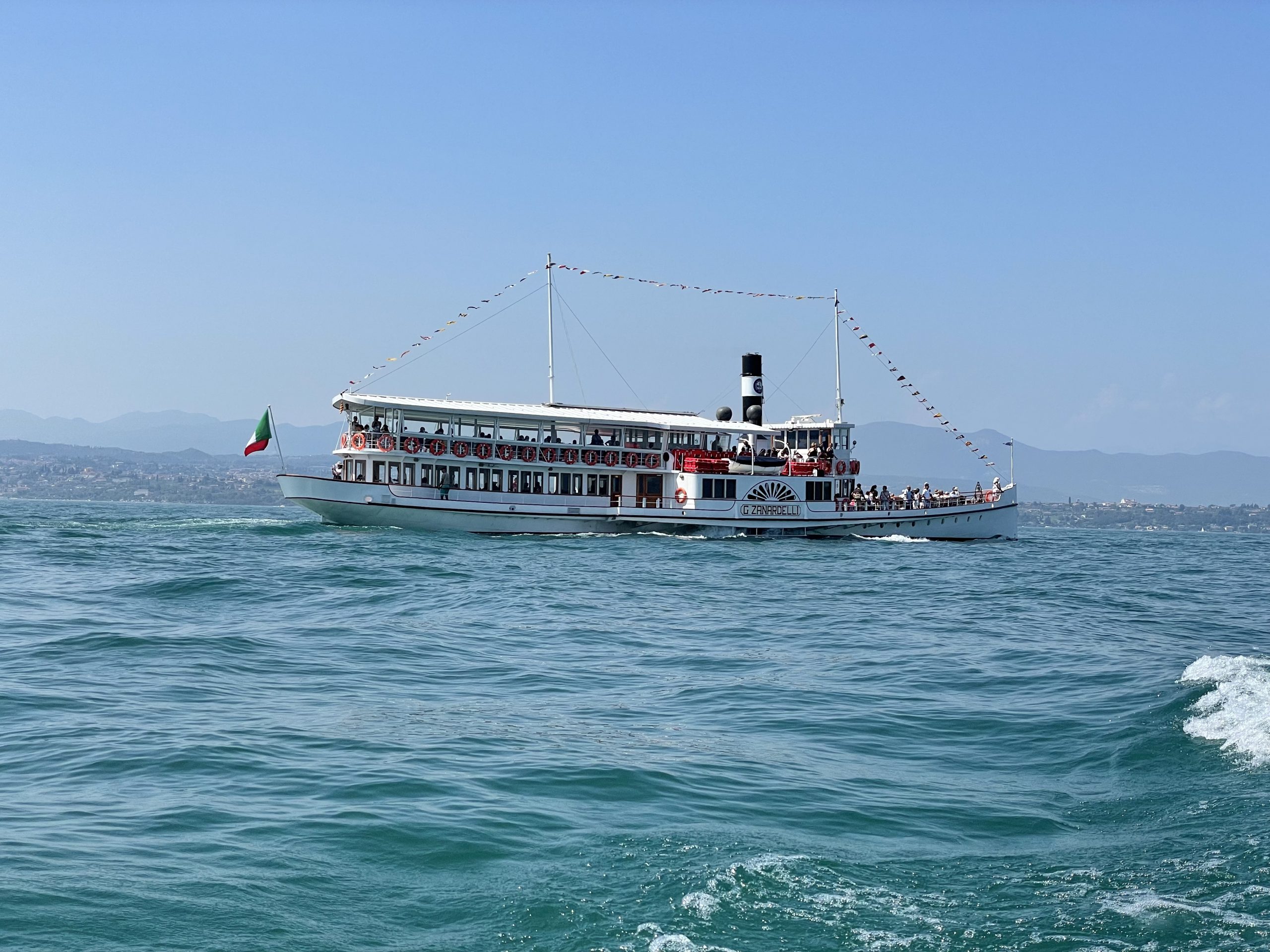 Auf unserem Trip über den See trafen wir auf das bereits betagte Fahrgastschiff "G. Zanardelli". Sie ist neben der etwas größeren Italia der einzig verbliebene zweite "Raddampfer" auf dem Gardasee