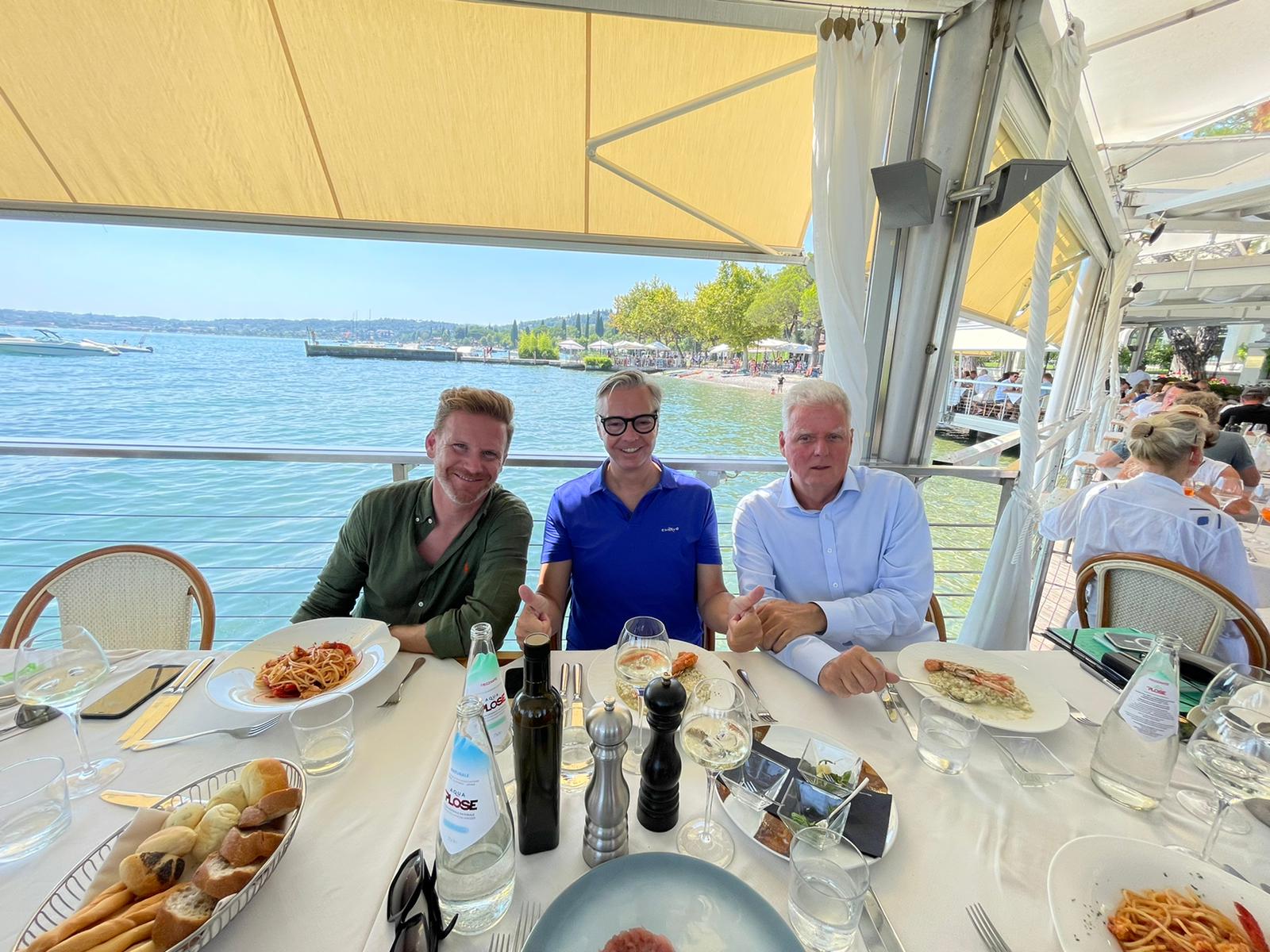 Wir geniessen ein nettes Mittagessen in San Vigilio