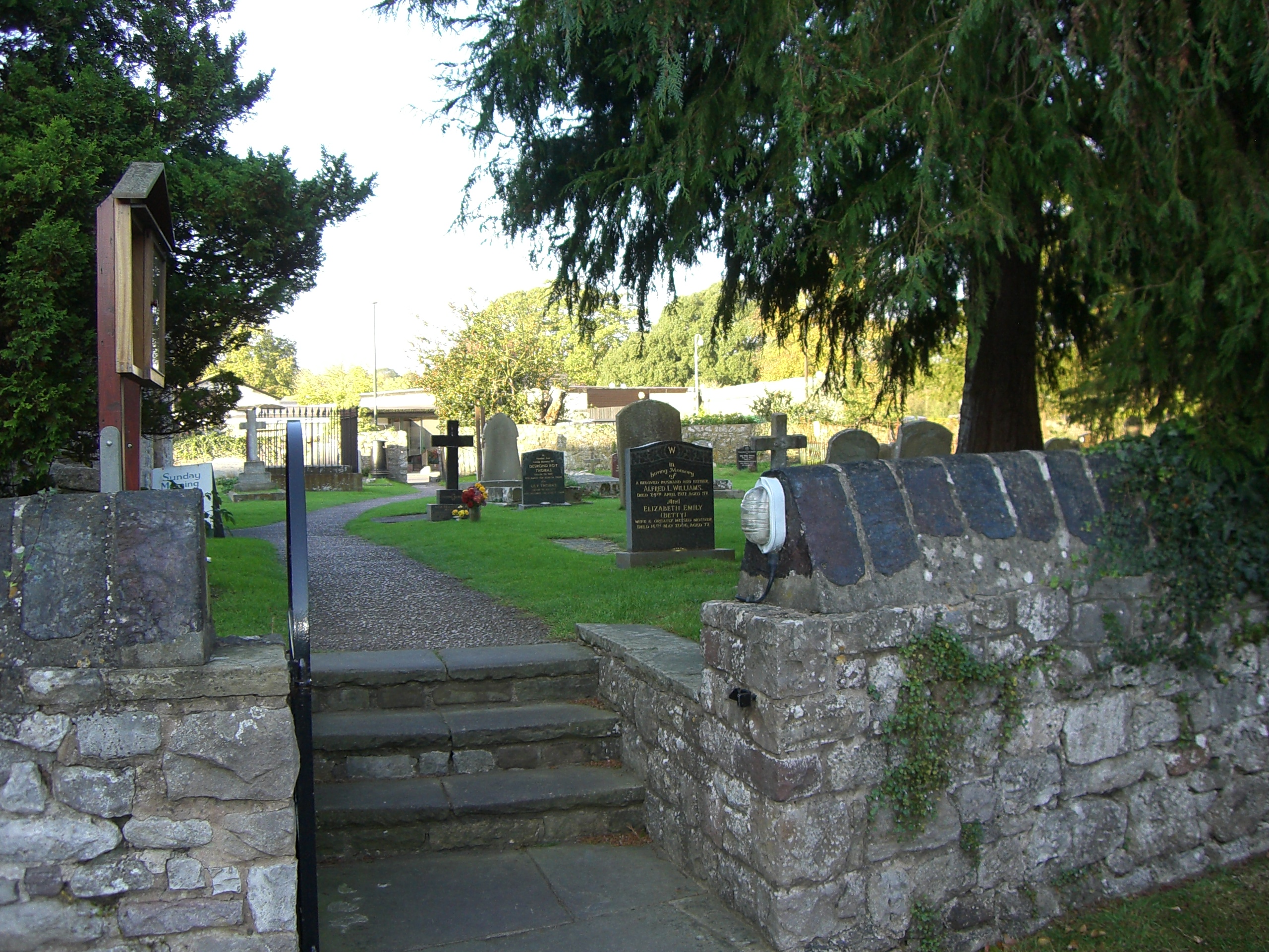 Auf dem Weg zum ersten Abschlag des Hotelplatzes in Chepstow mussten wir einen alten Friedhof passieren