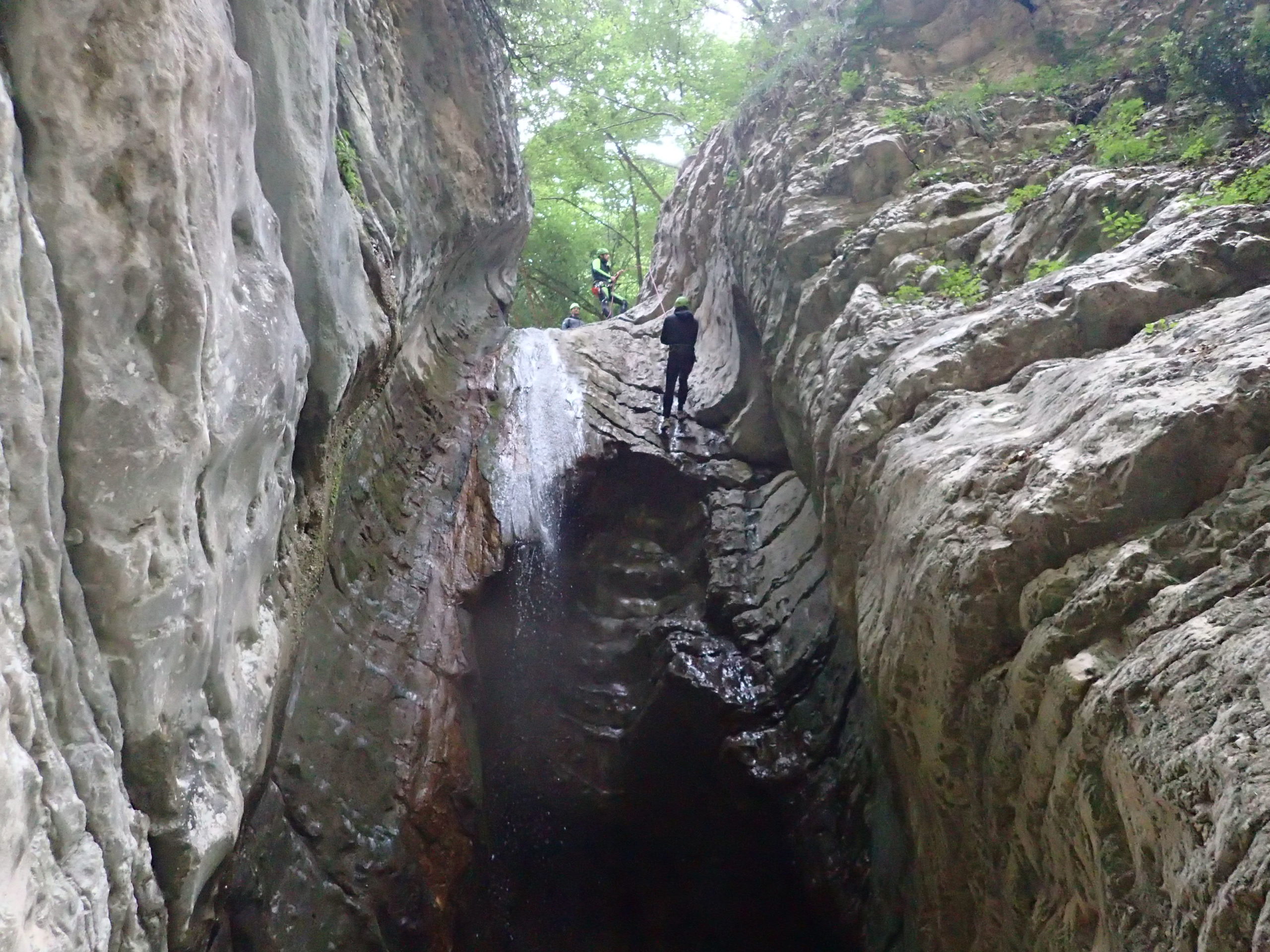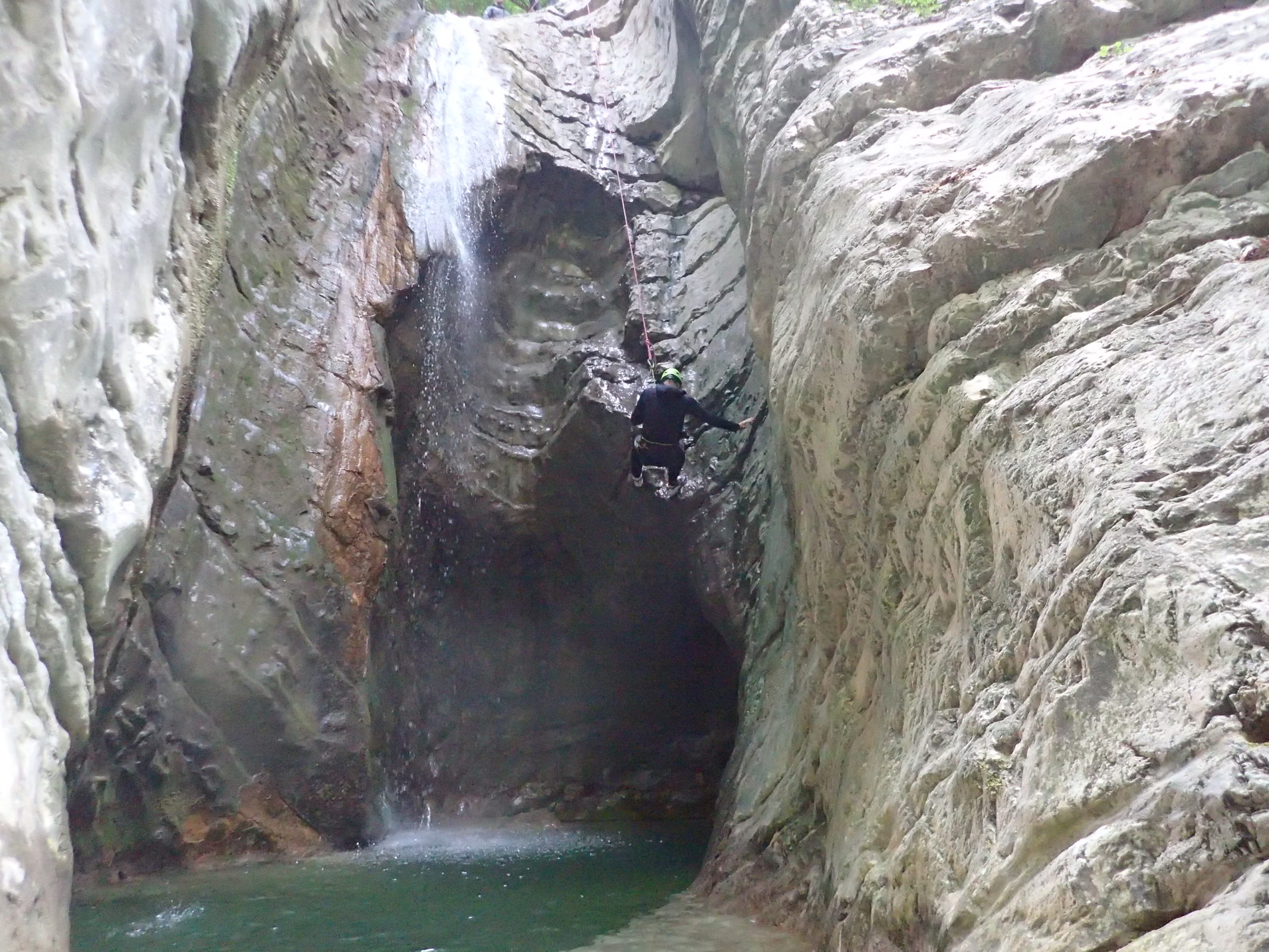 Durch Abseiler von 45 Meter Länge und Sprünge bis zu 10 Meter Höhe ist die Tour eine sportliche Herausforderung