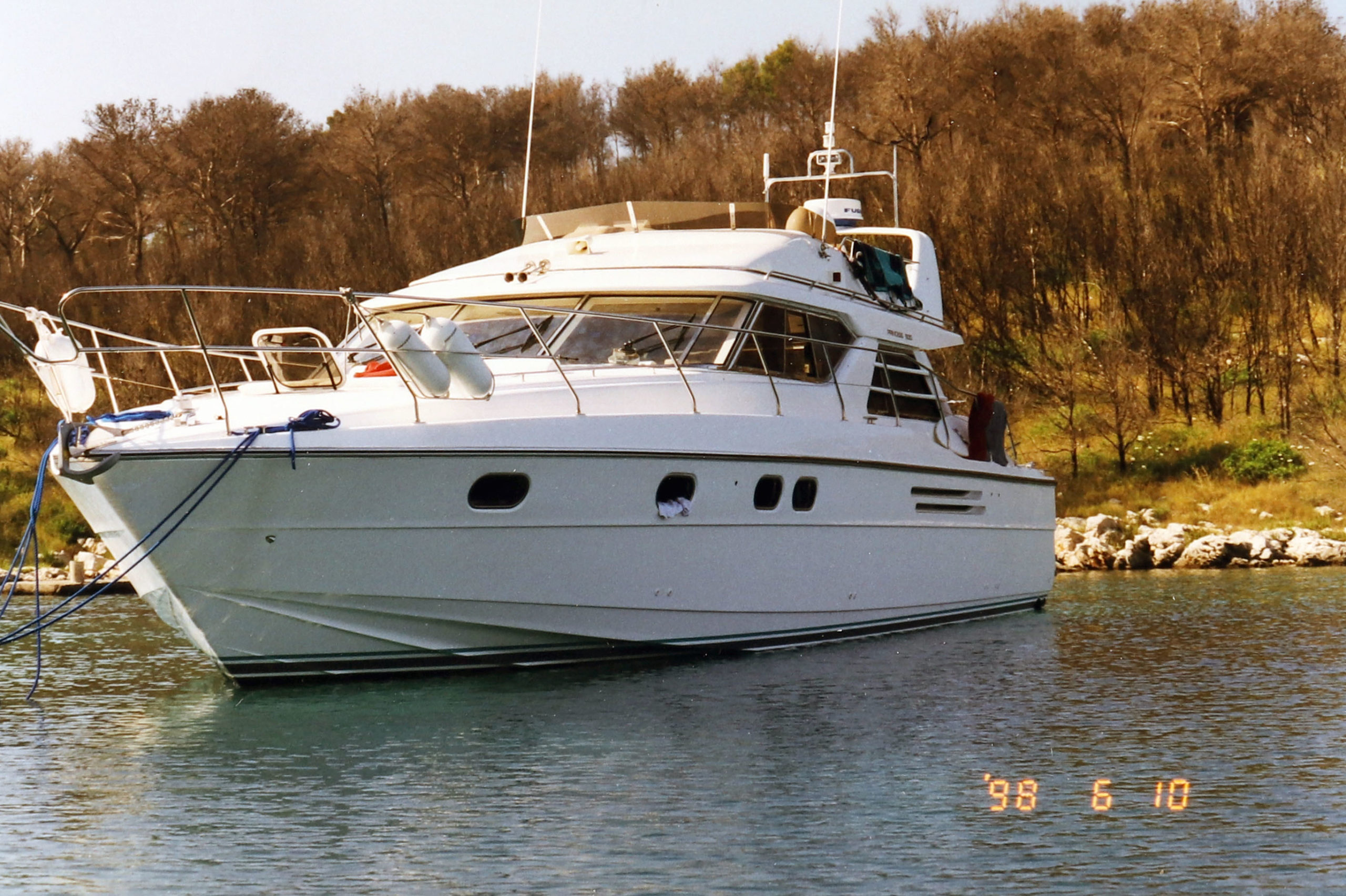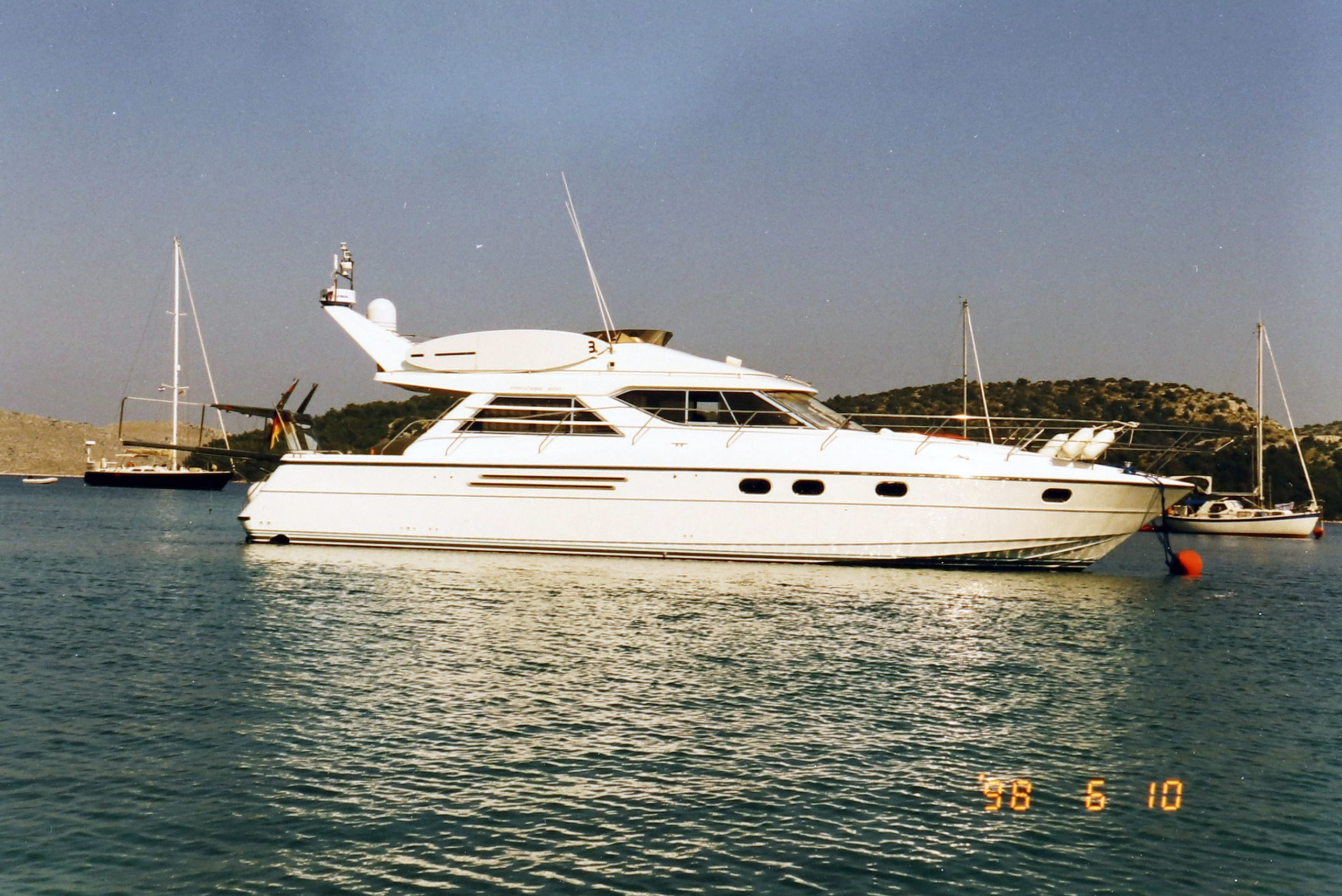 Im Frühjahr hatten sich Carolina und ich dazu entschieden für die gemeinsamen Sommerferien unserer kleinen Familie - die neben uns beiden noch aus Larissa, Paul und unserem West Highland White Terrier Eliot bestand - ein kleines "Ferienhaus auf dem Wasser" anzuschaffen. Nach ersten Testtörns mit Nina und Herbert Vogl auf ihrem Boot in der Adria - erst einer Broom und dann einer Princess - haben wir uns zu einer Flybridge Motoryacht entschieden und so habe ich begonnen den entsprechenden Gebrauchtbootmarkt zu sondieren. Schnell haben auch wir uns bei der Auswahl der Boots-Marke mit dem britischen Unternehmen Princess beschäftigt und im Rahmen des definierten Budgets und des für uns benötigten Platzangebots bei der Suche auf Boote in einer Größenordnung zwischen 14 bis 16 Meter konzentriert. Eine dabei vom in Lignano in der nördlichen Adria ansässigen Marken Vertreter ‚Boote Feichtner’ angebotene neue Princess 500 hat es uns angetan und so haben wir dieses Boot im Mai im Hafen der Firma Feichner in der Marina von Lignano-Sabbiadoro übernommen. Mit knapp 16 Meter Länge und 4,45 Meter Breite entsprach Sie genau unserem großzügig bemessenen Size-Target. Die Princess 500 Fly war ein perfektes Boot für unsere Familie sowie - bei Bedarf - sogar weiteren 4 Gästen an Bord. Sie hatte 4 Kabinen, 2 schöne Bäder, einen großen Salon und einen wunderbaren Fly Bridge Bereich auf dem Oberdeck. Mit 17 Tonnen Verdrängung, zwei Motoren mit 860 PS und Treibstofftanks mit 1.800 Liter kamen wir bei 24 Knoten Marschgeschwindigkeit - und damit 44 Stundenkilometer - circa 800 Kilometer weit, bevor es wieder an eine Tankstelle ging. Dies hat ab unserem Heimathafen in Grado bis ins südliche Dalmatien gereicht.