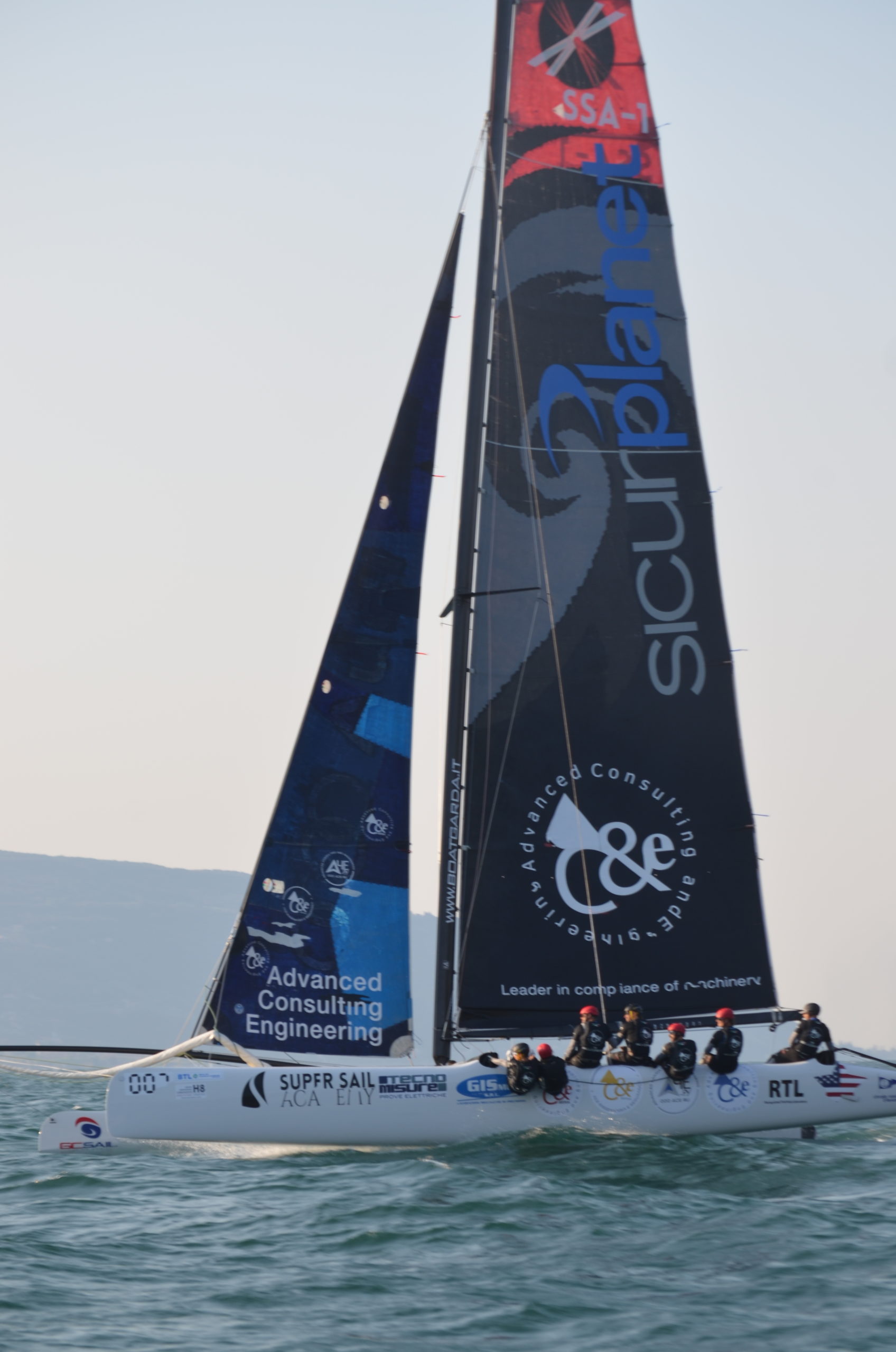 Seit einigen Jahren kommen auch vermehrt große Katamarane an den Gardasee, um an der Centomiglia erfolgreich mitzusegeln