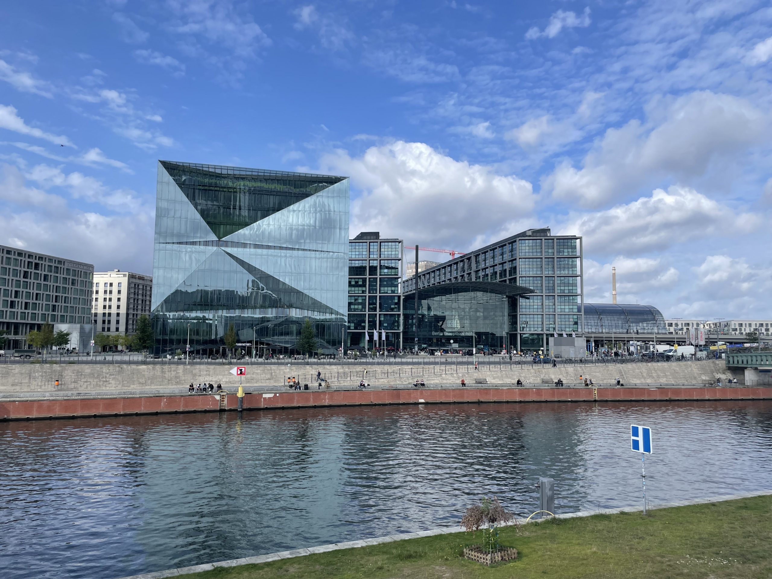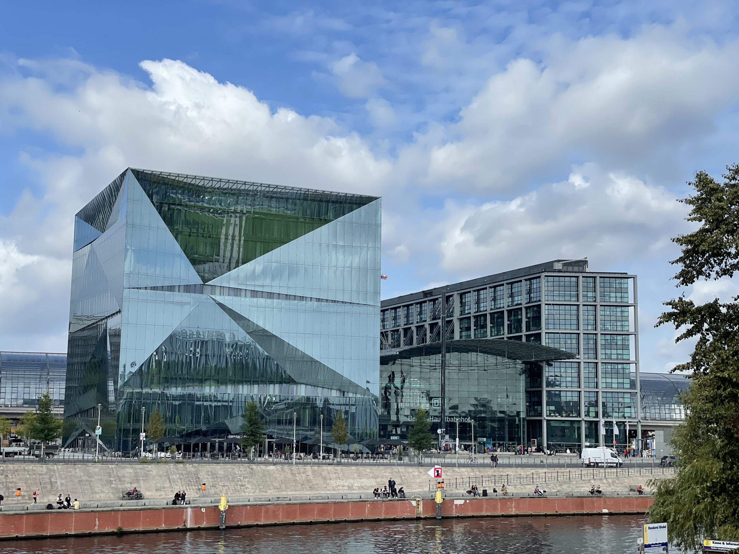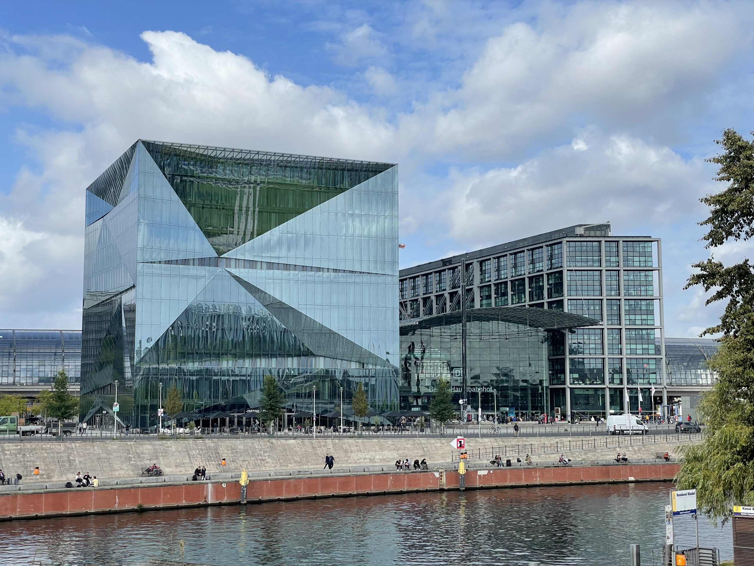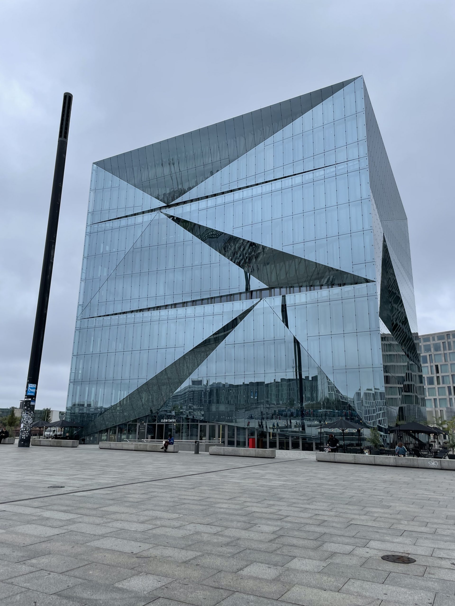 Der Cube Berlin ist ein würfelförmiges Bürogebäude auf dem Washingtonplatz in unmittelbarer Nachbarschaft zum Berliner Hauptbahnhof, das im Februar 2020 eingeweiht wurde. Das Gebäude ist Teil des 40 Hektar großen Stadtquartiers Europacity und schließt dessen südlichen Das auffällige zehngeschossige Gebäude mit einer Breite, Höhe und Länge von jeweils 42,5 Metern ist gekennzeichnet durch eine nach innen gefaltete Glasfassade. Die vollflächig mit Falten und Knicken gestaltete Fassade spiegelt die Umgebung wie ein Kaleidoskop. Neben dem individuellen Aussehen erfüllen die Faltungen mehrere praktische Aufgaben: hinter ihnen verbergen sich auf jedem Obergeschoss kleine Terrassen, die aber nur den Mietern zur Verfügung stehen. Im Erdgeschoss ziehen auf rund 1000 Quadratmeter gastronomische Einrichtungen ein und werden einen Teil eines öffentlichen Marktplatzes bilden. Die voll vermietete Fläche des Geschäftshauses beträgt 17.000 Quadratmeter, genutzt unter anderem von einer Anwaltskanzlei und von der Deutschen Bahn. Das Innere des cube ist mit modernster Technik ausgestattet, dazu gehören eine Mobile-App-Steuerung zur Öffnung der Tiefgaragenschranke, danach zur Öffnung des Foyers. Über die gleiche Technik können auch Personen im Haus gefunden werden und der Fahrstuhl hält automatisch in der Etage, auf der der Nutzer sein Büro hat. – Insgesamt sind 3800 Sensoren für die intelligente Steuerung verbaut. Darüber hinaus wird die bei der Sonneneinstrahlung entstehende Energie zur Kühlung der zugeführten Frischluft eingesetzt. Beschichtete Fensterscheiben verringern das Aufheizen des Inneren. Die Architekten 3XN Architects aus Kopenhagen und der Bauherr betonen, dass das cube berlin ressourcenschonend und energieeffizient ausgelegt ist. Bauträger des zu Beginn des 21. Jahrhunderts geplanten Geschäftshauses war die Firma CA Immo und die Baukosten betrugen rund 100 Millionen Euro. Die Fertigstellung verzögerte sich infolge der Finanzkrise des Jahres 2008 um viele Jahre, der Baubeginn erfolgte erst im Jahr 2017 und wurde im Februar 2020 beendet.