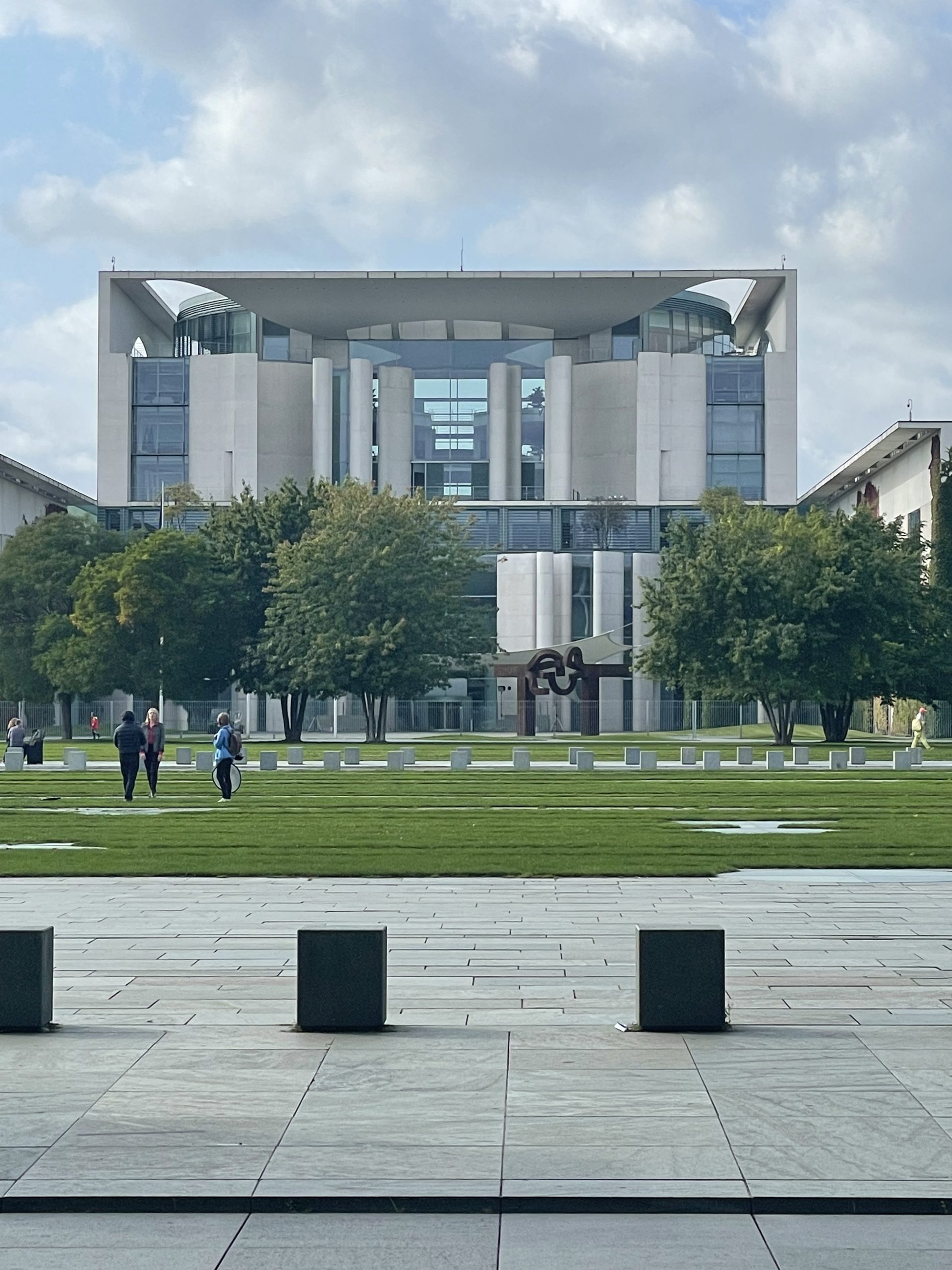 Das Kanzleramtsgebäude gehörte zu den wichtigsten Bauten in der Bundeshauptstadt Berlin. Entworfen und errichtet wurde es von den Architekten Axel Schultes und Charlotte Frank. Nach dem Baubeginn 1997 dauerte es nur vier Jahre, bis das Amt eingeweiht wurde. Zu dem Ensemble gehören auch die Bundestagsbauten Paul-Löbe- und Marie-Elisabeth-Lüders-Haus. Die Spree, die einstige Grenze zwischen Ost und West, ist in die Architektur integriert und wird immer wieder durch Brücken überwunden. Zwei lange Gebäudezeilen umschließen den mittleren Kubus des Kanzleramts. Wintergärten und die Büros der circa 590 Mitarbeiter wechseln sich darin ab. Für den Empfang von Staatsgästen befindet sich vor dem Gebäude ein Ehrenhof. Hier steht die 90 Tonnen schwere Plastik "Berlin" des spanischen Künstlers Eduardo Chillida. Das Bundeskanzleramt befindet sich an der Adresse Willy-Brandt-Straße 1 in 10557 Berlin