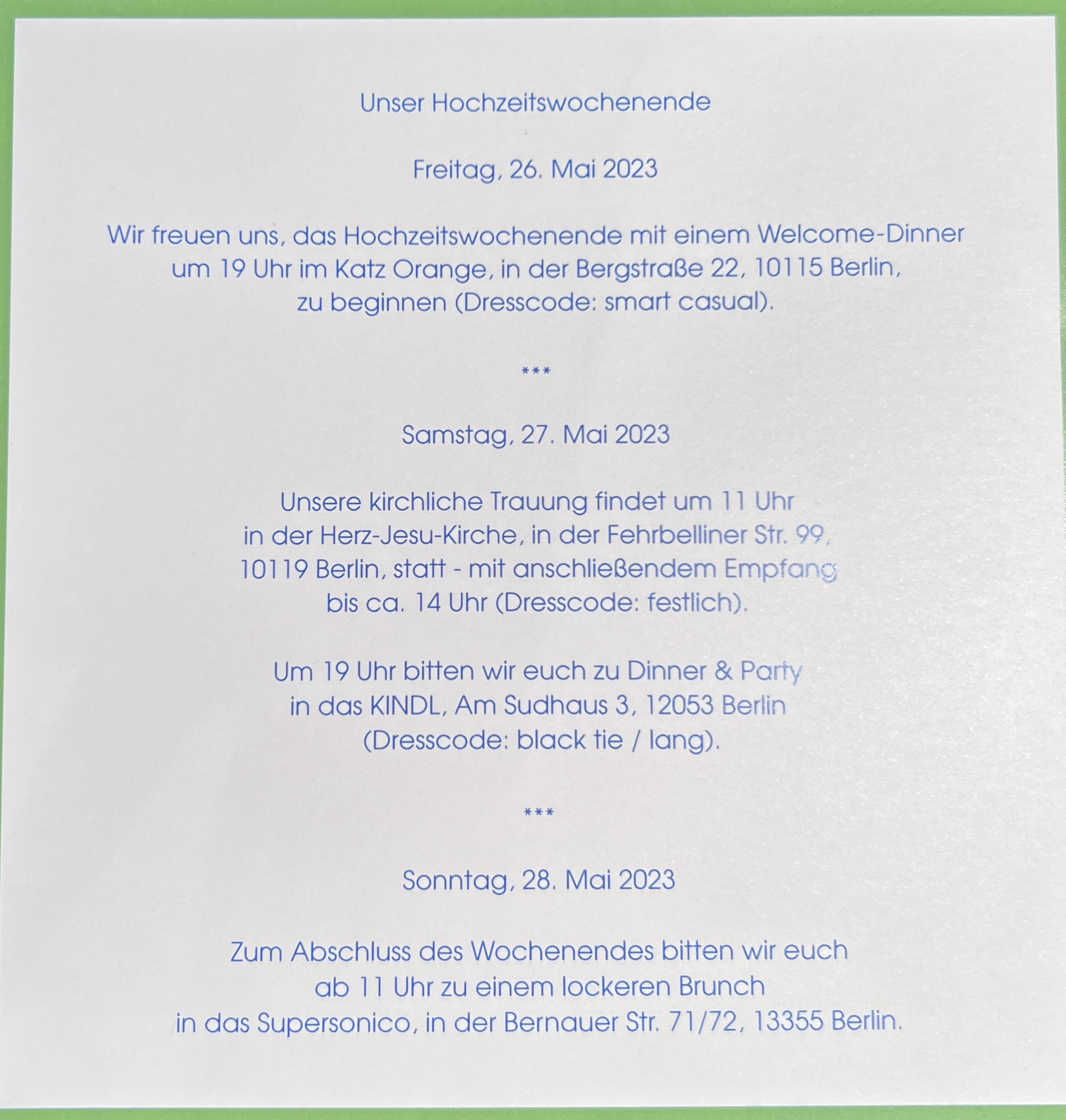 So schaut es aus ... das Hochzeitswochenende in Berlin
