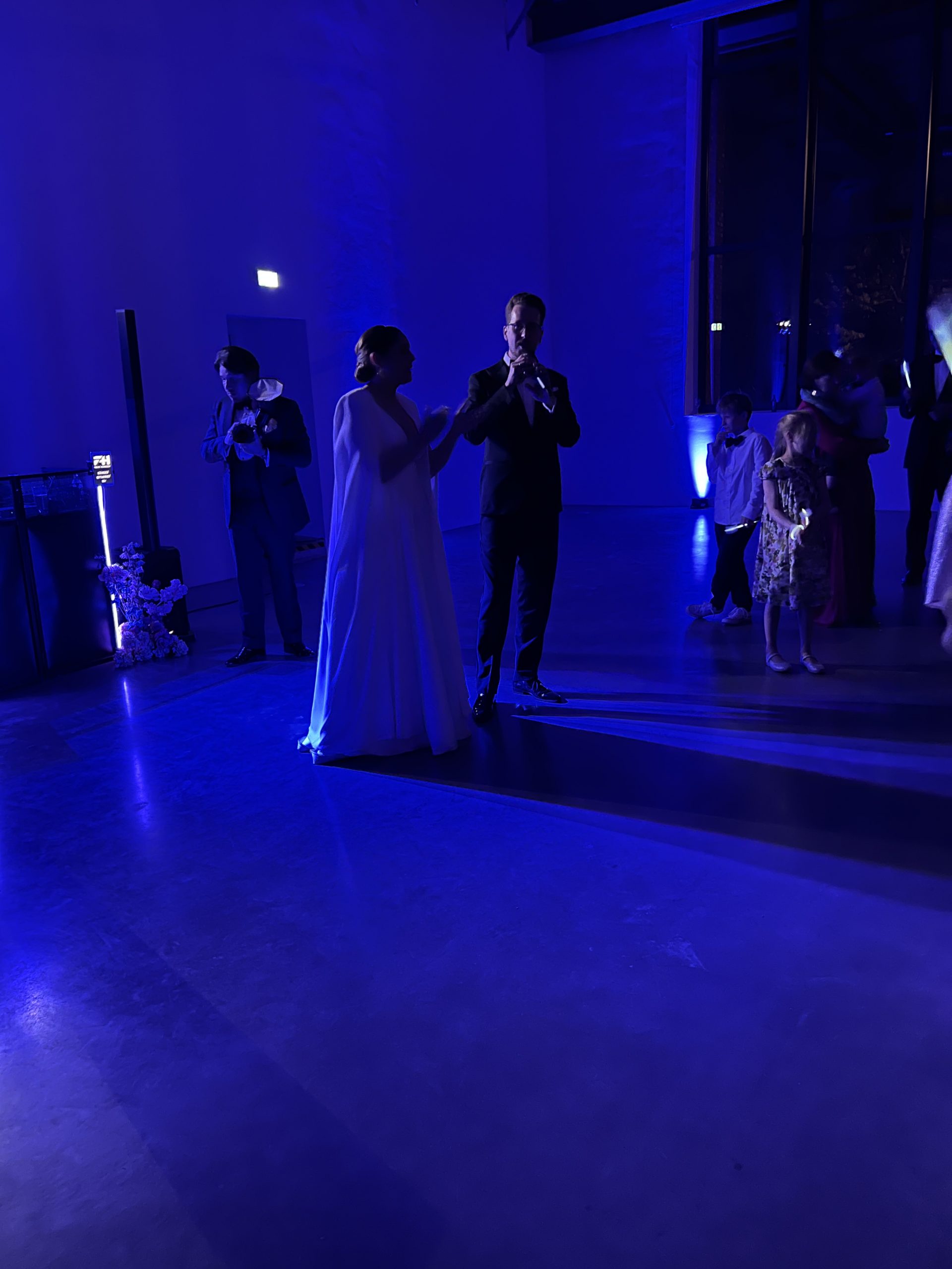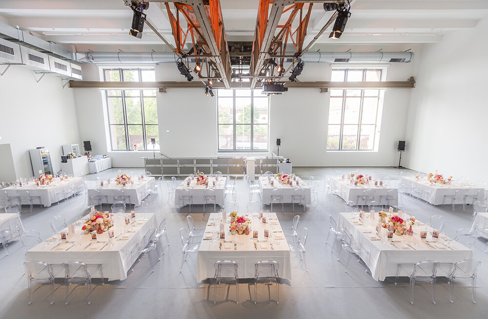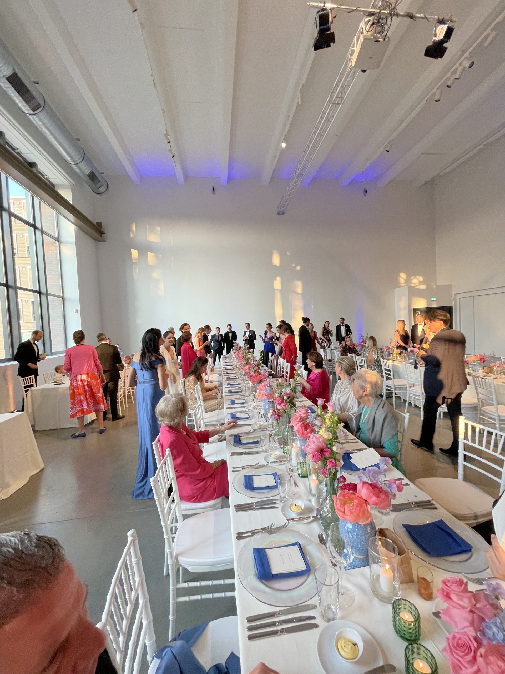 In diesem Raum haben wir an zwei langen Tafeln elegant gekleidet die Hochzeit gefeiert