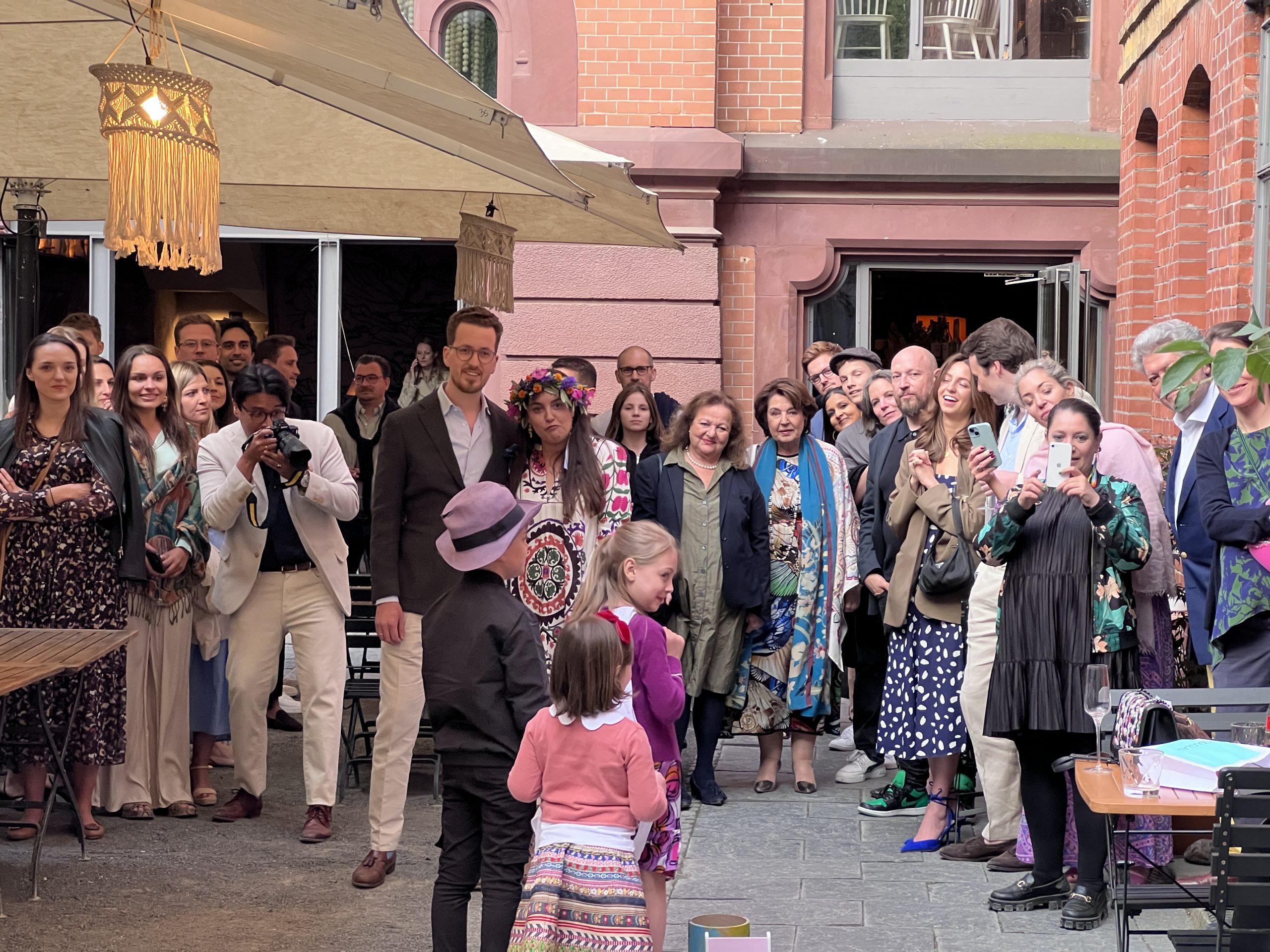 Bei herrlichem Sonnenwetter gab es einen wunderbaren Empfang im schönen Innenhof der Kirche