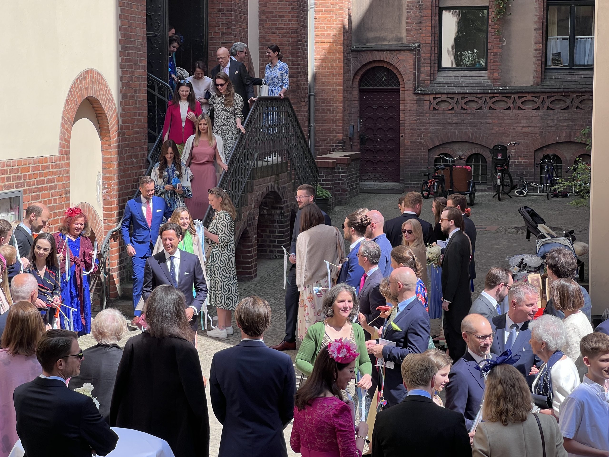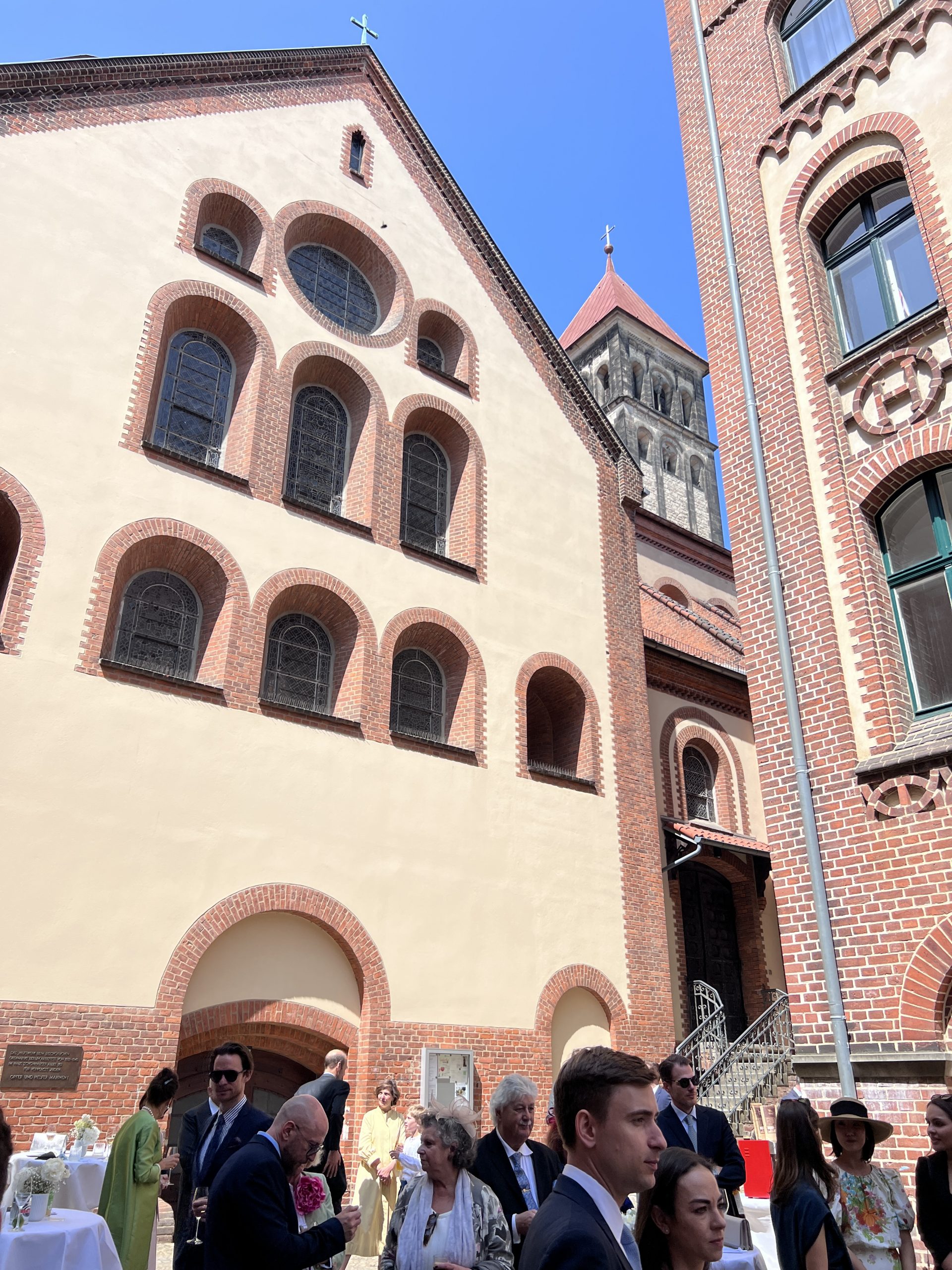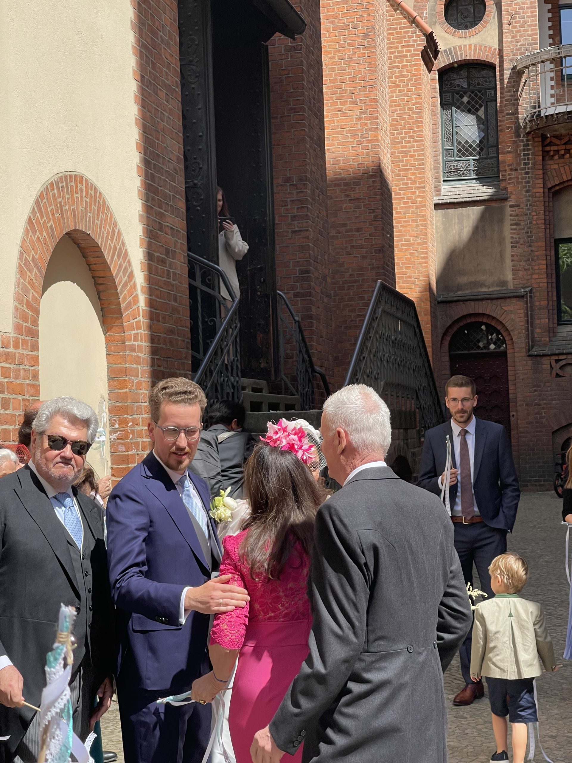 Nachdem Annette und ich mit Felicia und Paul sowie einem ausgewählten Kreis unserer engsten Kernfamilie und den Trauzeugen am Freitag, den 3. Juni 2022 - und damit an meinem 63. Geburtstag - bereits die standesamtliche Trauung des jungen Paars zu ihrem 10 jährigen Jubiläum im Chiemgau feiern durften, haben wir die kirchliche Hochzeit am Pfingstwochenende und damit eine Woche vor meinem nunmehr 64. Geburtstag in der Bundes-Hauptstadt gefeiert. Das schöne Ereignis konnten wir mit 85 Gästen, von denen 30 Personen Familie und 55 Personen die Freunde des Paares waren, in einer extrem netten Runde begehen. Ort der Trauung war die katholische Herz-Jesu-Kirche an der Fehrbelliner Straße zwischen den Stadtteilen Mitte und Prenzlauer Berg. Dieses Gotteshaus ist ein architektonisch bedeutender, im niedersächsisch-romanisch und frühchristlich-byzantinischen Stil errichteter Kirchenbau. Hier hatte das Brautpaar Glück im Unglück, denn nachdem der für die Trauung im Detail gebriefte Pfarrer wegen gesundheitlicher Probleme kurz vor dem Start der Zeremonie vom Notarzt in die Klinik transprtiert werden musste, lieferte der Ersatzmann ohne Manuskript 20 Minuten später eine perfekte Trauung ab. Am Vorabend der Trauung trafen wir uns im wunderbaren Restaurant Katz Orange in der Bergstraße in Berlin Mitte und am Hochzeits-Abend zur Dinner Party in der ehemaligen Kindl Brauerei in Neukölln. Zum Abschluß gab es am Sonntag noch einen lockeren Brunch im Supersonico in der Bernauer Strasse. Annette, meine Mutter und ich waren zusammen mit Carolina, Dina, Patricia und Mathias im Hotel Telegraphenamt zu Gasr, wo ich zufällig auch Christian von Bechtolsheim getroffen habe. Alles in allem eine tolle Hochzeit und ein wundervolles Fest, an welches wir alle lange zurück denken werden, zumal der Hochzeitstag am Nachmittag mit der eigentlich nicht mehr erwarteten 11. Deutsche Meisterschaft des FCB in Folge zusammenfiel.