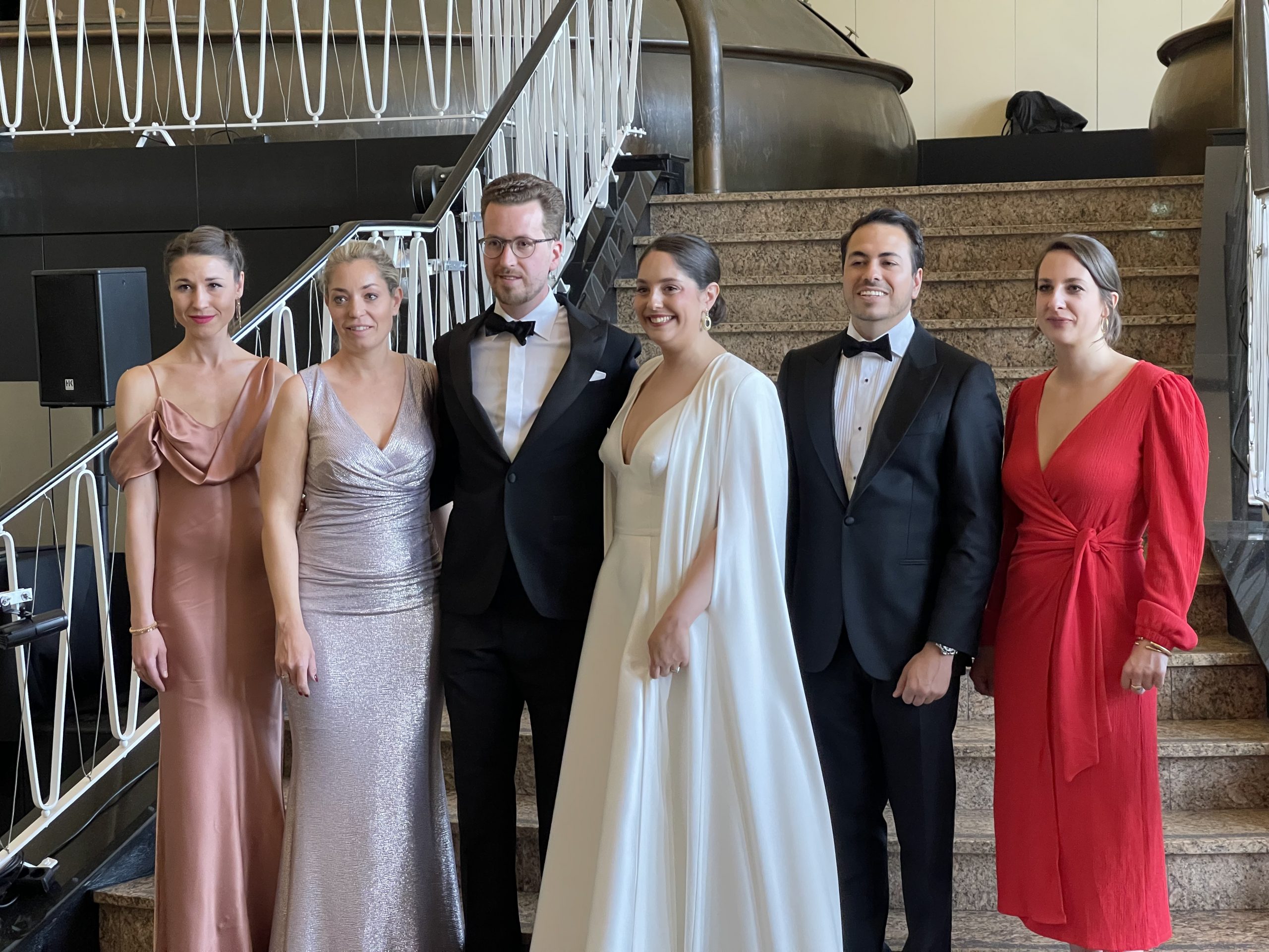 Die Trauzeugen Blanca Bernheimer, Alex Müller, Maria Würth sowie Leonore Merck