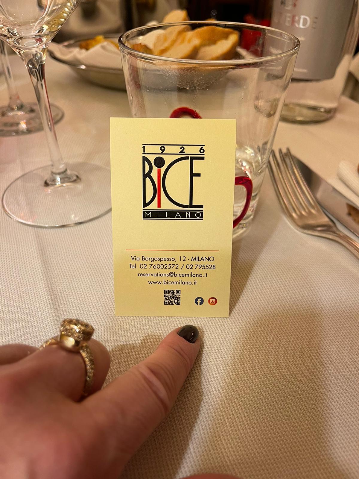Zum Abendessen traf sich Ette mit Lisa im Ristorante Bice in der Via Borgospesso